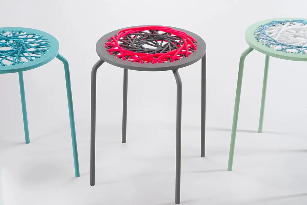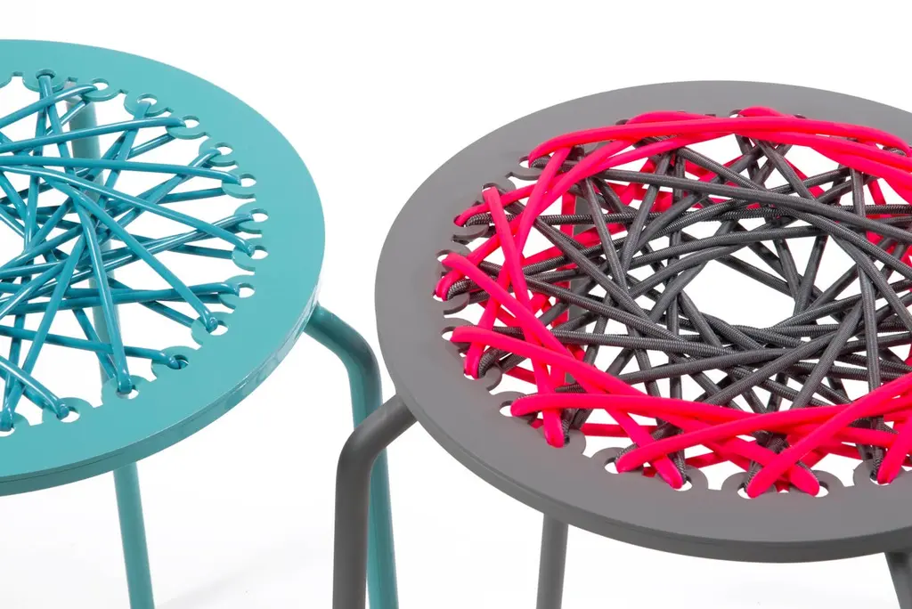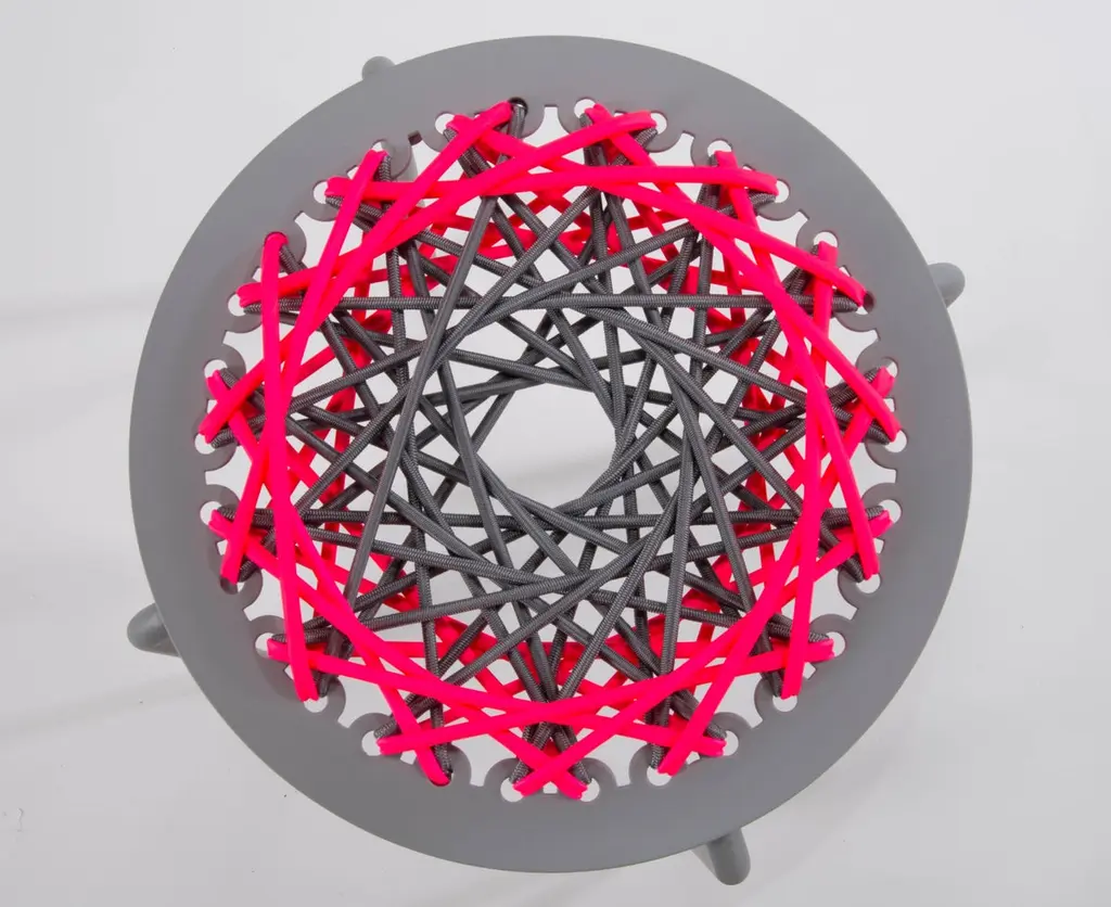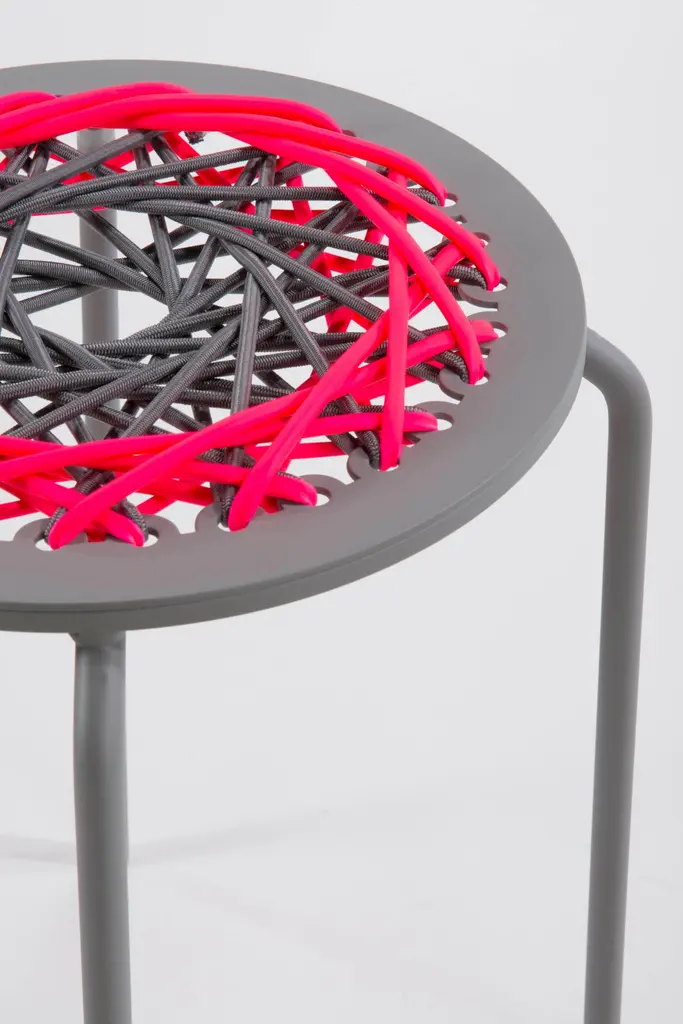 Carnevale Studio's most popular collection, “Stretch”. Through experiments with a number of different materials I chose latex, bungee and rope for their bright colors and wondrous elasticity. I wanted to bring some of the exuberance of the fashion world into my designs.Originally built and created in Brooklyn & shown at the Salone del Mobile in Milan - these new editions are made in The Netherlands, where the studio is now based.These new Dutch editions will include special editions of new colors exclusive to 1stdibs! The result is a collection of vivid pieces, after all, design should be beautiful and useful, but also fun.Handwoven by the designer, Jessica Carnevale.For Indoor use only. Handmade: slight variations in color, shape and finish may be present adding to the unique beauty of each piece.Matte Grey with Woven Bungee cord to match with Pink accents. Neon pink or bubblegum pink accents