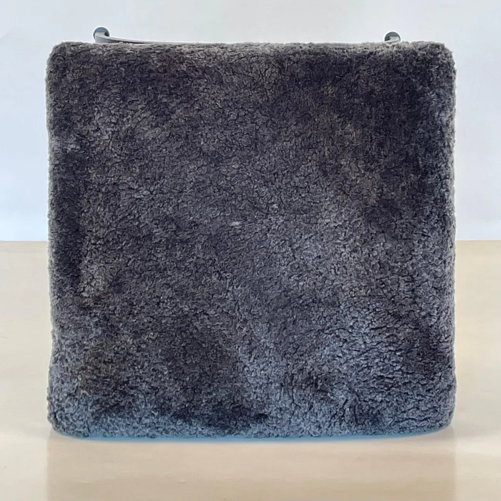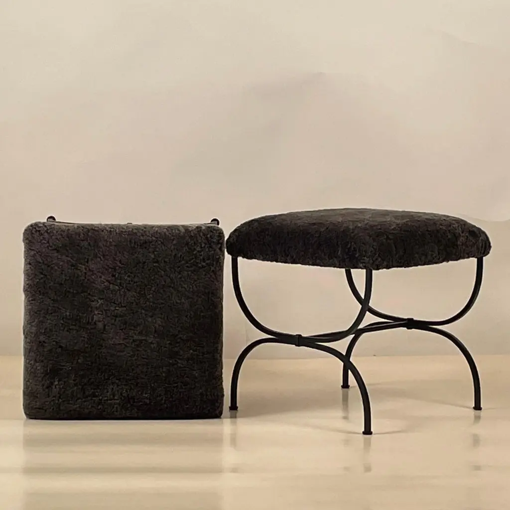 Grey fur 'Strapontin' stool by Design Frères.Chic and understated.