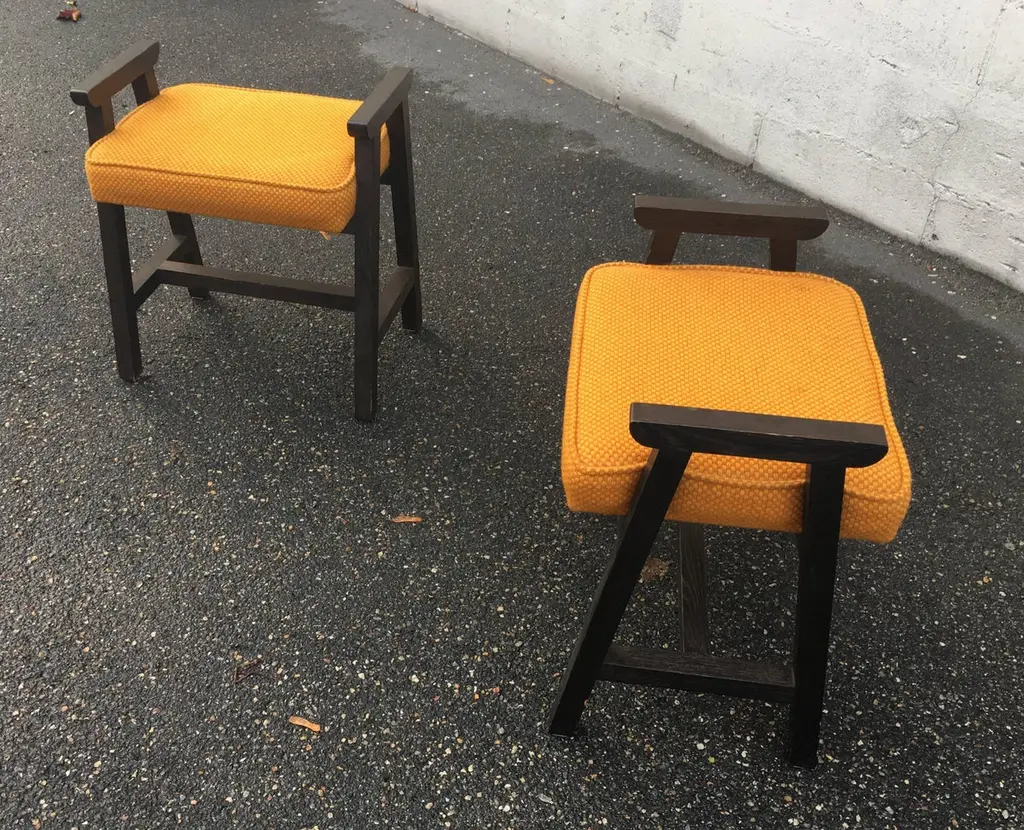 Guillerme et Chambron, 2 blackened oak stools, Edition Votre Maison, circa 1970.the price is for 1 STOOLTwo stools are available