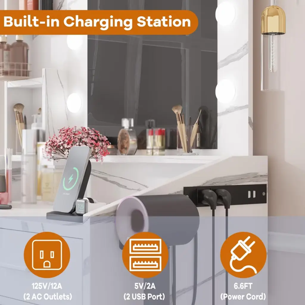 Why Choose Our Vanity? Every girl/woman deserves an exclusive vanity that reflects her beauty and grace. Our makeup vanity is not just a piece of furniture, it makes you indulge in self-care and unleash your inner radiance. Step into your power, embrace your uniqueness, and let our makeup vanity be your canvas for self-expression and confidence.