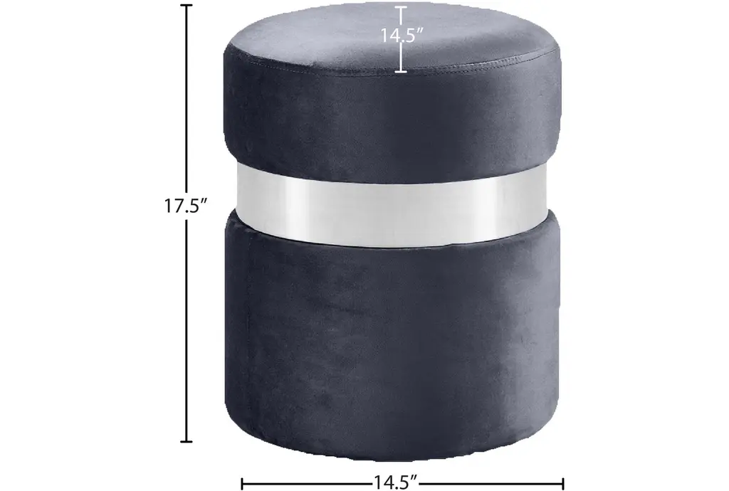 The Hailey Grey Velvet Round Upholstered Ottoman / Stool adds a modern touch to any living room. Its grey velvet fabric is soft and luxurious, providing comfortable seating or a stylish accent piece. The chrome finish offers a sleek, contemporary look.