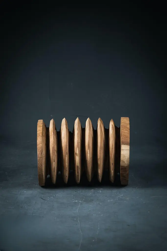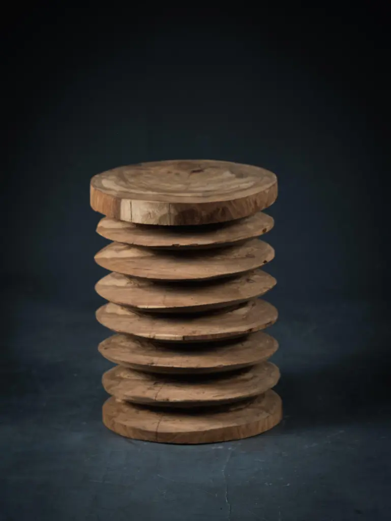 This exceptional stool is a unique piece, hand-carved from solid, dense wood, giving it remarkable robustness and presence. Its bold design, composed of superimposed discs, combines modernity and traditional craftsmanship, making it a true decorative and collectible object. with its 18 kg, it embodies solidity and durability, ideal both as a seat and as a side table. Its raw wood, with warm shades and visible natural veins, brings an organic and authentic touch to any interior. Perfect for ethnic chic decoration, a minimalist space or a contemporary layout looking for pieces with a strong and timeless character.