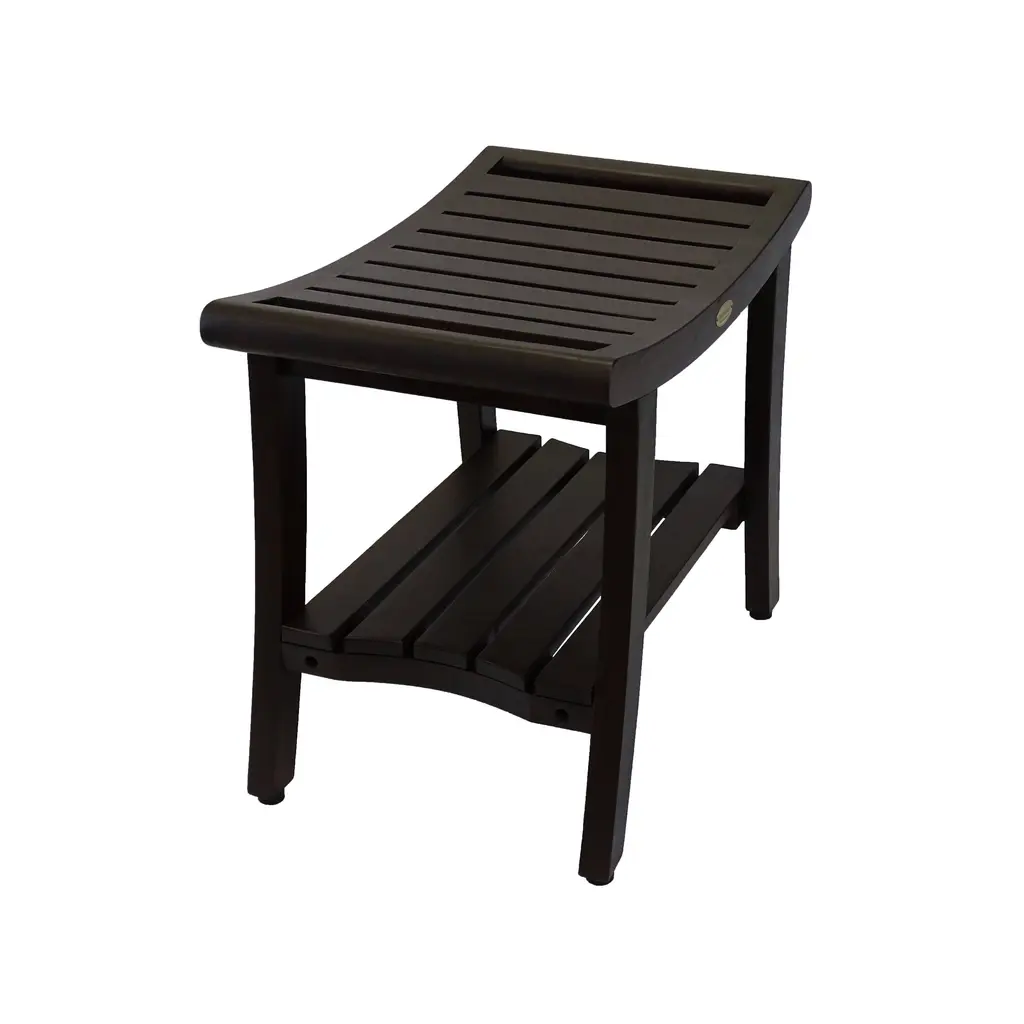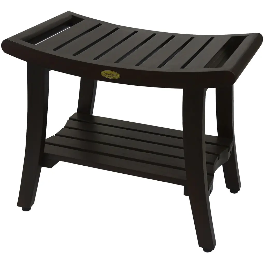 Elevate your bathroom with the DecoTeak Harmony 30" Teak Shower Bench, a blend of natural beauty and practical design. Crafted from certified plantation-grown teak wood, this bench is finished in Woodland Brown, adding both protection and a warm, rich color perfect for high-moisture spaces. Designed to bring elegance to any bathroom, this versatile teak bench can be used as a stylish bathroom seat or a durable shower stool, making it an essential piece for any bathroom. The DecoTeak Harmony bench doesn't just look good—it's built to support up to 300 pounds, providing sturdy and reliable seating. With its naturally water-resistant properties, teak wood makes this bench ideal for wet environments, keeping it looking beautiful over time. Whether you're using it inside the shower or as a decorative accent, this bench combines timeless style with high functionality.Features:Spa-Inspired Elegance: Turn your bathroom into a relaxing retreat with this teak shower bench. The natural warmth of teak wood adds a luxurious, spa-like feel to your space, making your shower more inviting and serene. Built to Last: Strong and sturdy, this bench is designed to support up to 300 pounds. Whether you're using it as a seat or to hold your bath essentials, this bench is built for daily use and long-lasting durability. Water-Resistant: Made from high-quality teak wood, this bench is naturally water-resistant, making it perfect for wet environments. Its moisture-repellent properties help keep it looking great, even with daily use. Functional & Stylish: This teak bathroom bench combines sleek, minimalist design with functionality. Its versatile look complements any bathroom décor while providing practical seating or storage space. Perfect for Any Space: Use this wooden shower bench anywhere—from your bathroom to other rooms in the house. It's a great way to add style and function wherever you need it. Natural Finish & Unique Grain: Crafted using proprietary finishing techniques, this teak bench showcases the beautiful natural color variations and grain of certified plantation-grown teak. Each bench has its own unique texture that adds a rich look to your bathroom. Women-Owned Women-Owned Excellence: All of our products, including this teak bench, are imported by a certified woman-owned company. We're dedicated to delivering top-tier quality, value, and customer service, offering designs that make a difference in your daily life. Dimensions Dimensions: Sized at 30 inches wide, 14 inches deep, and 18 inches tall, this bench is the perfect fit for most shower spaces, adding both comfort and style. Holds up to 300 pounds.
