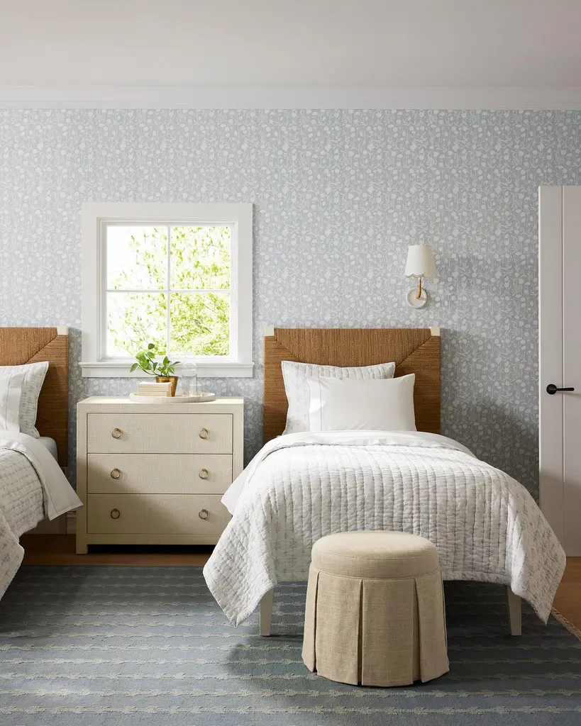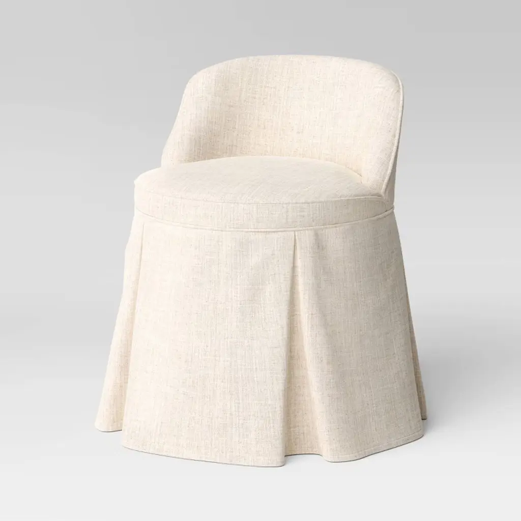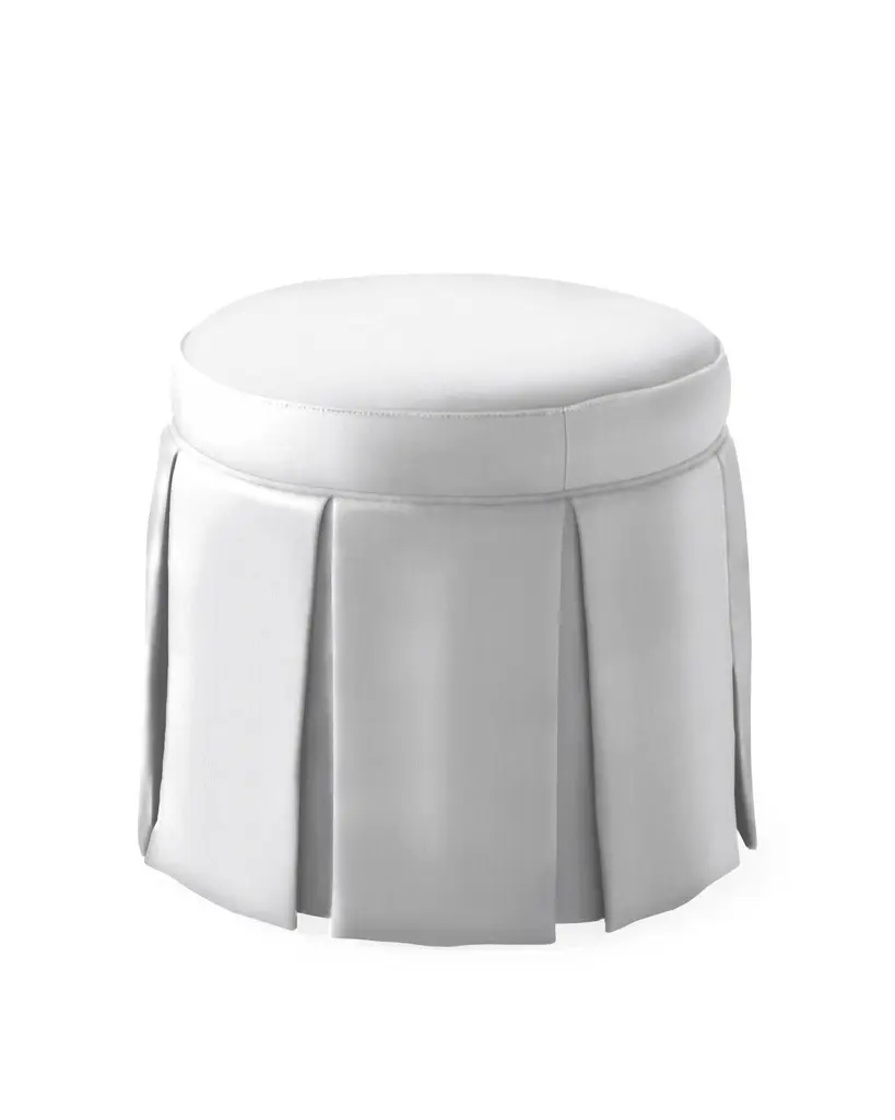 Impeccable tailoring. A skirted seat for the vanity, a place to rest your feet... Dressed in your fabric of choice.