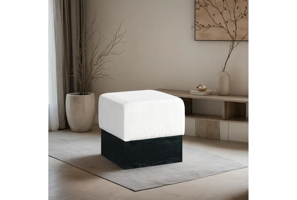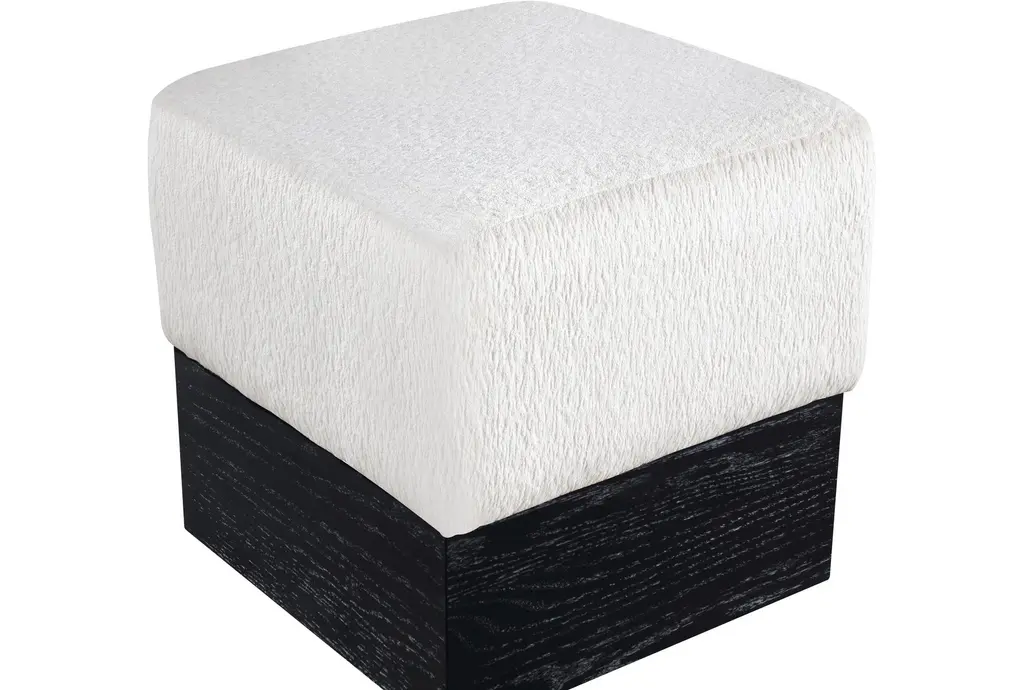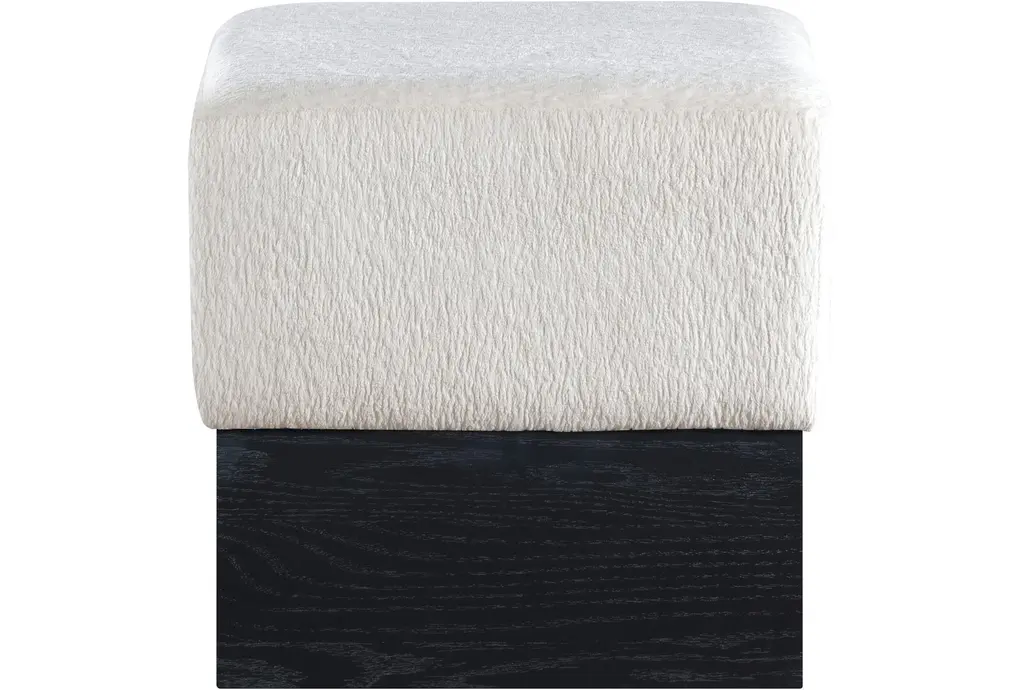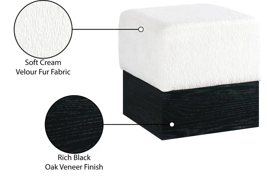 Havre Cream Velour Fur Fabric Ottoman / Stool