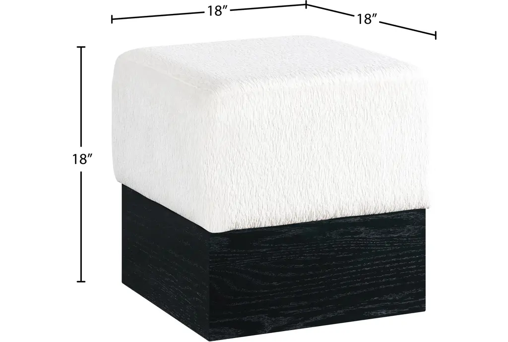 The Havre Cream Velour Fur Fabric Ottoman/Stool is a stylish and versatile addition to any living space. Its soft cream velour fur fabric provides a luxurious feel, while the rich black finish adds a touch of sophistication. The square shape and art deco design make it a perfect accent piece for modern interiors.