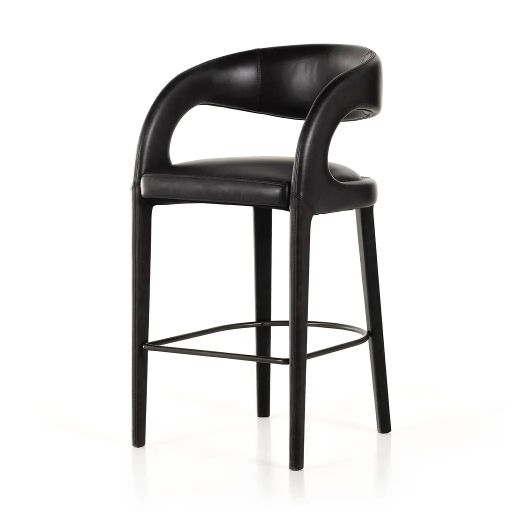 Elevate your kitchen with the Hawkins Stool from Four Hands. Its finely-sculpted curves and choice of high-performance fabric or top-grain leather not only make for a shapely addition, but also ensure long-term comfort and unmatched durability. Designed to withstand spills, stains, and high traffic, this stool is a sophisticated and practical choice for any well-styled space. Highlights
