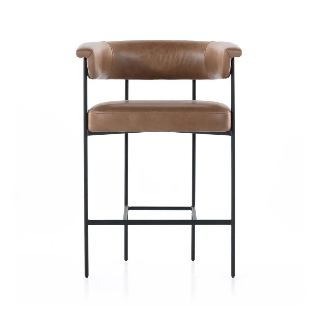 Elevate your kitchen with the Hawkins Stool from Four Hands. Its finely-sculpted curves and choice of high-performance fabric or top-grain leather not only make for a shapely addition, but also ensure long-term comfort and unmatched durability. Designed to withstand spills, stains, and high traffic, this stool is a sophisticated and practical choice for any well-styled space. Highlights