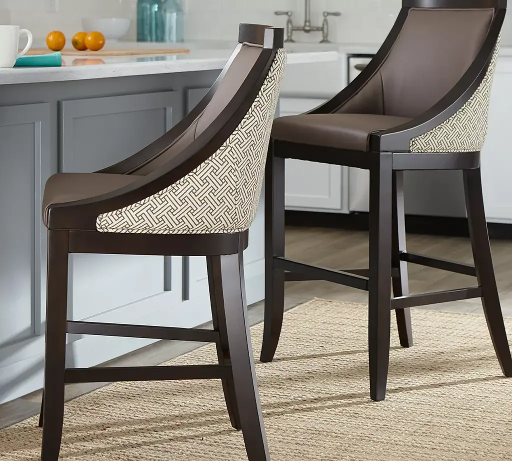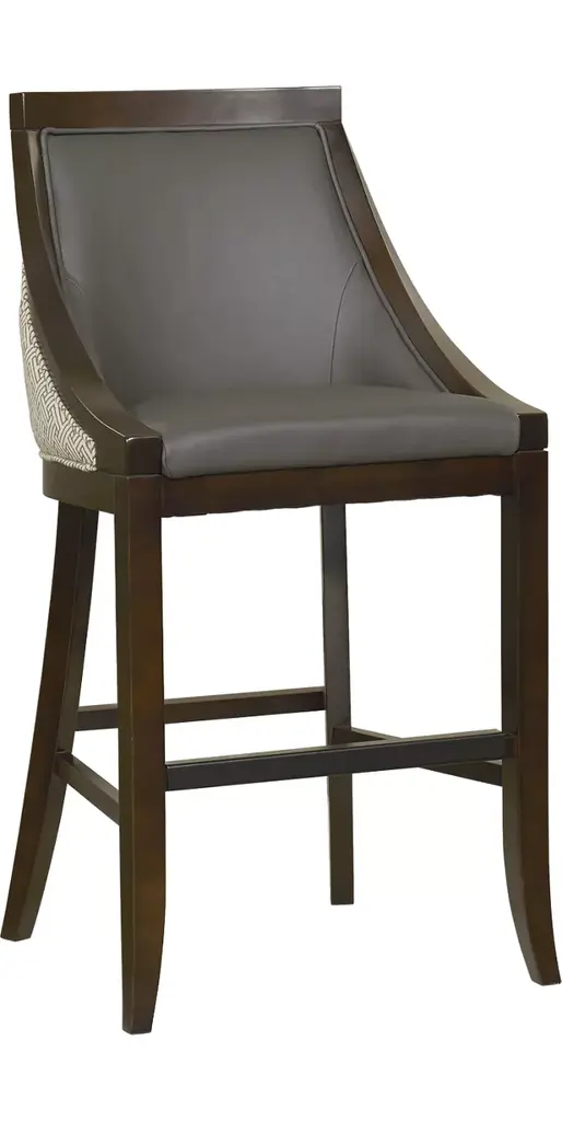 Sloping curves and an eye-catching geometric pattern make our Hayden stool an excellent seating choice for your space. The solid birch wood and veneers in tandem with tapered legs in a brown finish complement the sleek aesthetic of the seat's performance fabric.