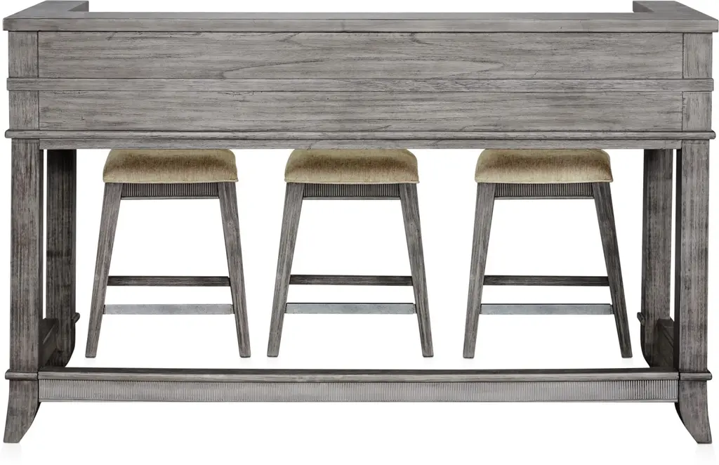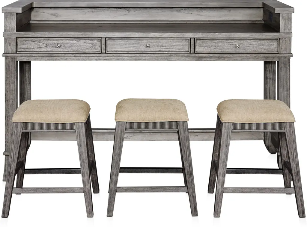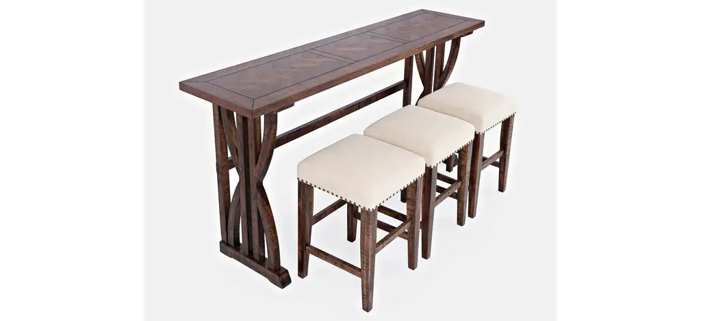 The sleek Hazel Gameday Console Table and 3 Stools has clean lines and lots of style versatility.