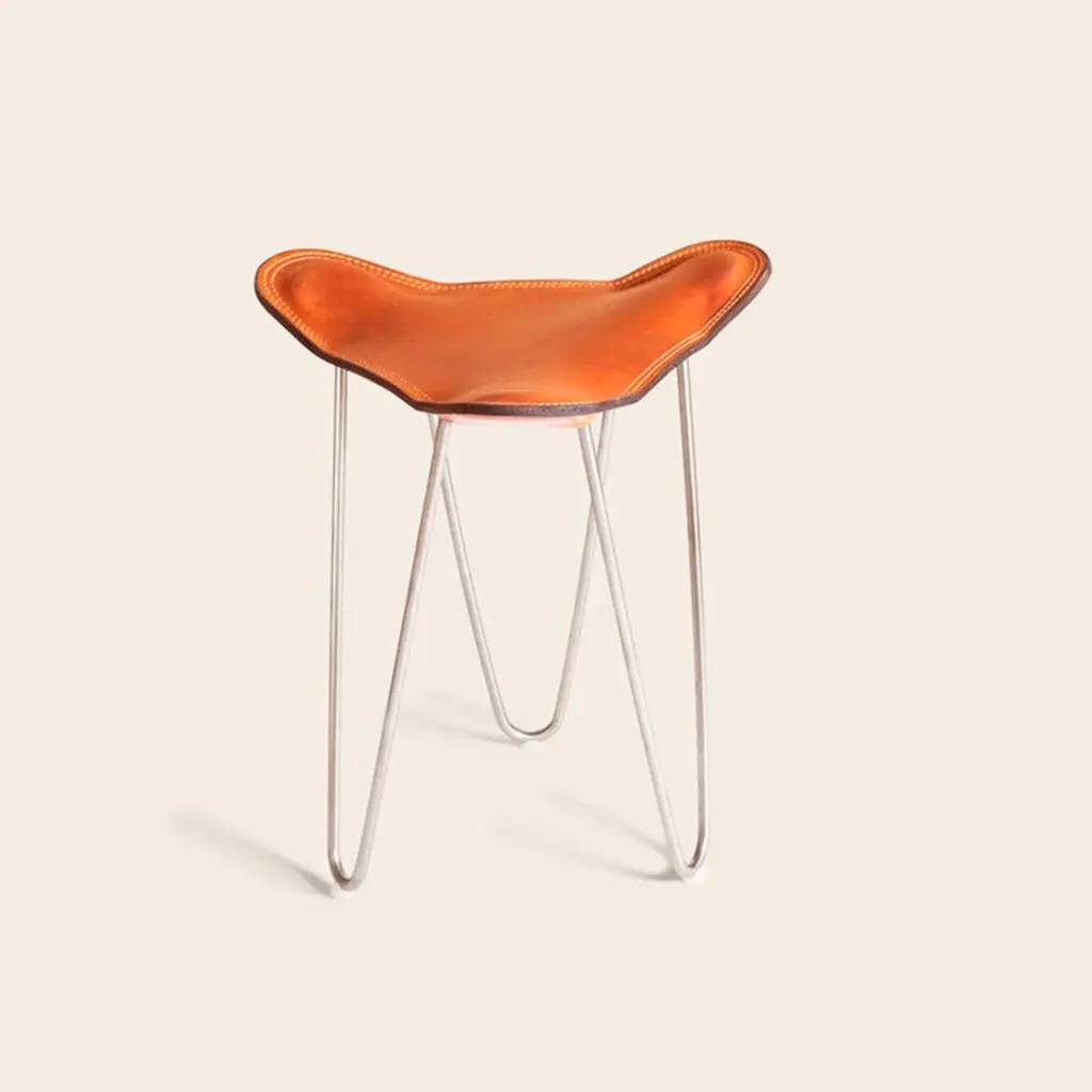 Hazelnut and steel Trifolium stool by OxDenmarqDimensions: D 40 x W 40 x H 45 cmMaterials: Leather, Steelalso available: Different colors and other frame color availableOX DENMARQ is a Danish design brand aspiring to make beautiful handmade furniture, accessories and lighting in natural high-quality materials in fair prices. "When we set out back in 2003, we were primarily working with vegetable-tanned saddle leather thus the name OX was a tribute to our unique leather and the animal providing it.The other half of our name, DENMARQ, is chosen to emphasize that we are a Danish design brand based on the Danish design tradition and that most of our furniture is produced in Denmark. However, DENMARQ not only refers to our home country, but also to the co-founder and designer - DENnis MARQuart.Before finishing his design studies at the Copenhagen Design University, Dennis Marquart did a Blacksmith education. This background is extremely useful when developing and designing products."OX DENMARQ handmade products will only get more beautiful as time passes and natural patina sets in.Many OX products are shaped around marble or vegetable-tanned saddle leather. Stone and leather are materials that will, and should, get marks over time. But they will also age with a very special beauty. When you learn to appreciate the beauty of maturity and of time passing, you have learned to appreciate patina the way it should be appreciated.