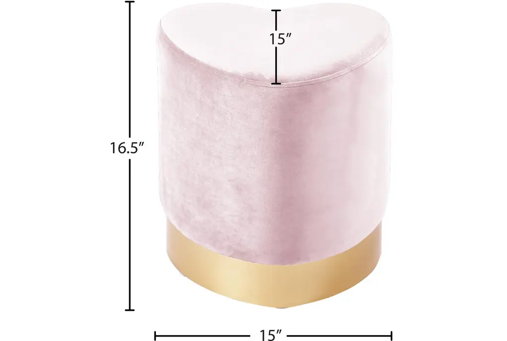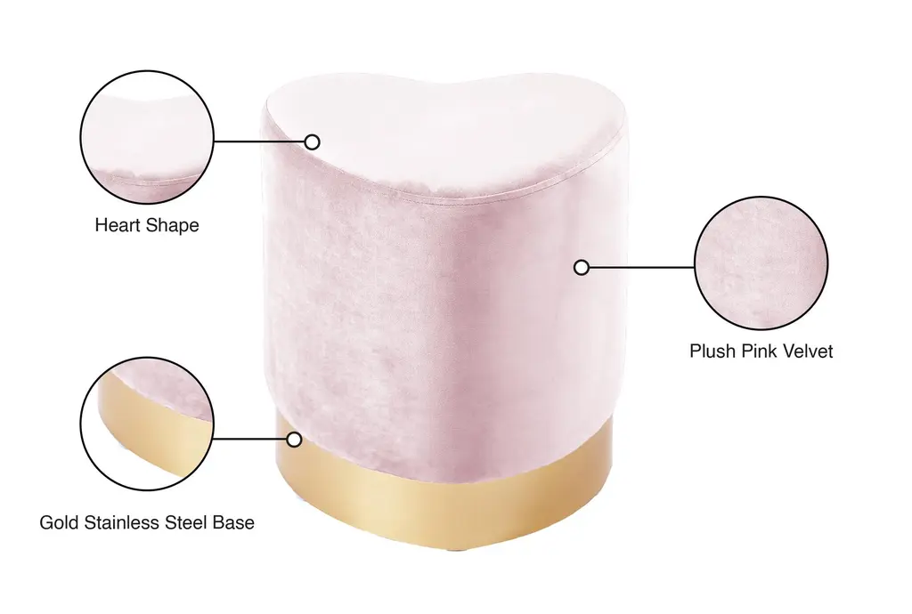 Heart Pink Velvet Upholstered Ottoman / Stool