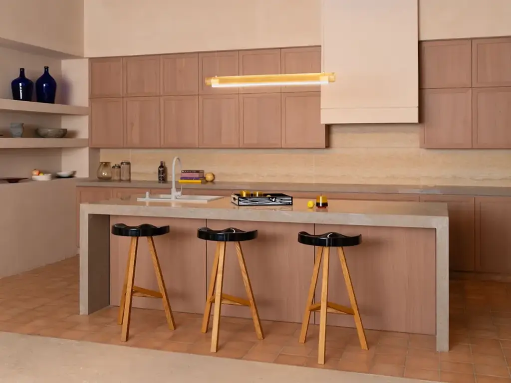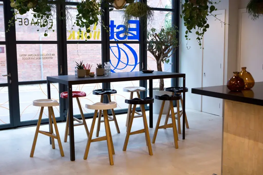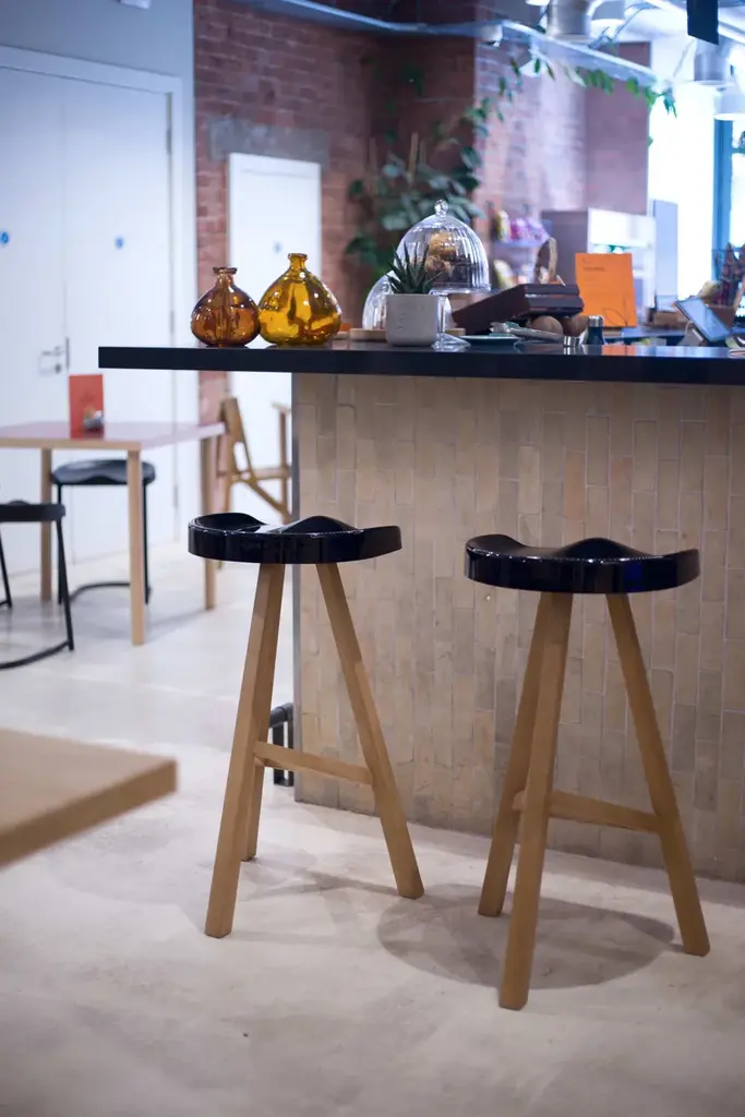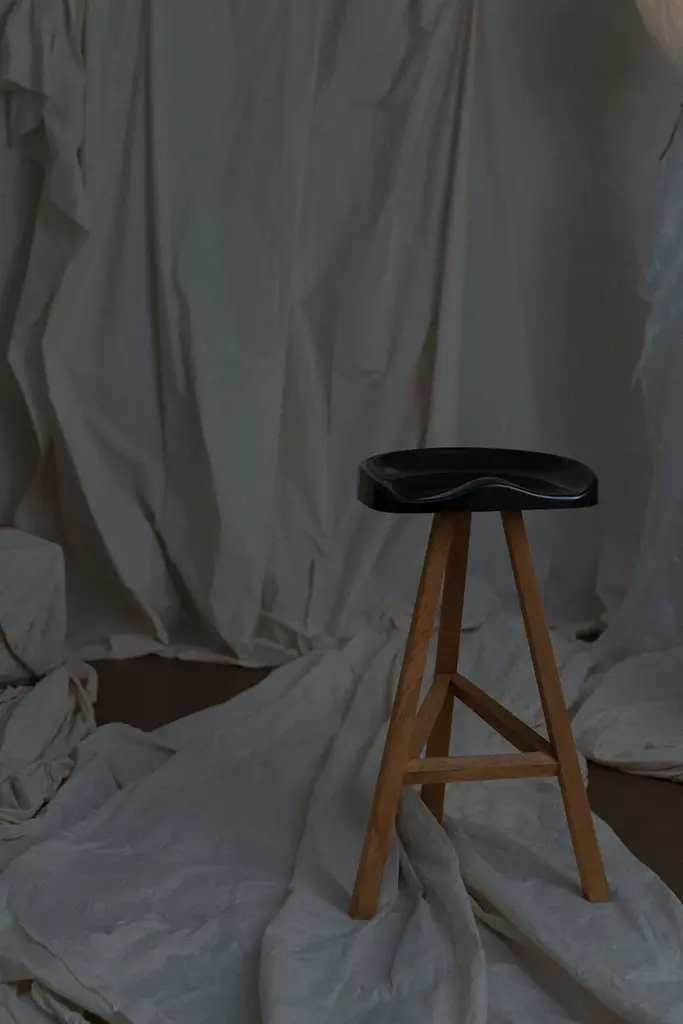 Heidi is a stool inspired by the classic tractor seat and the rustic three-legged wooden milking stool.The solid, colorful molded seat is combined with a sturdy, geometric wooden frame. Perfect as a kitchen stool, it is available in three heights, allowing any dining area to be furnished with a sophisticated splash of color.Materials:Heat-formed acrylic, polyurethane, European oak, oil.Colors:Black, white.