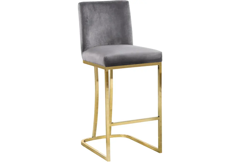 Heidi Grey Velvet Upholstered Stool With Gold Finish
