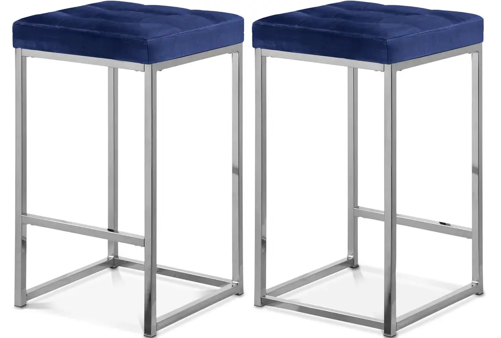 Heidi Navy Velvet Upholstered Stool With Chrome Finish