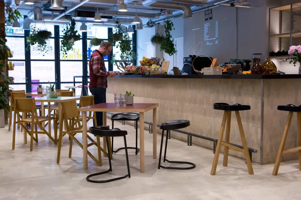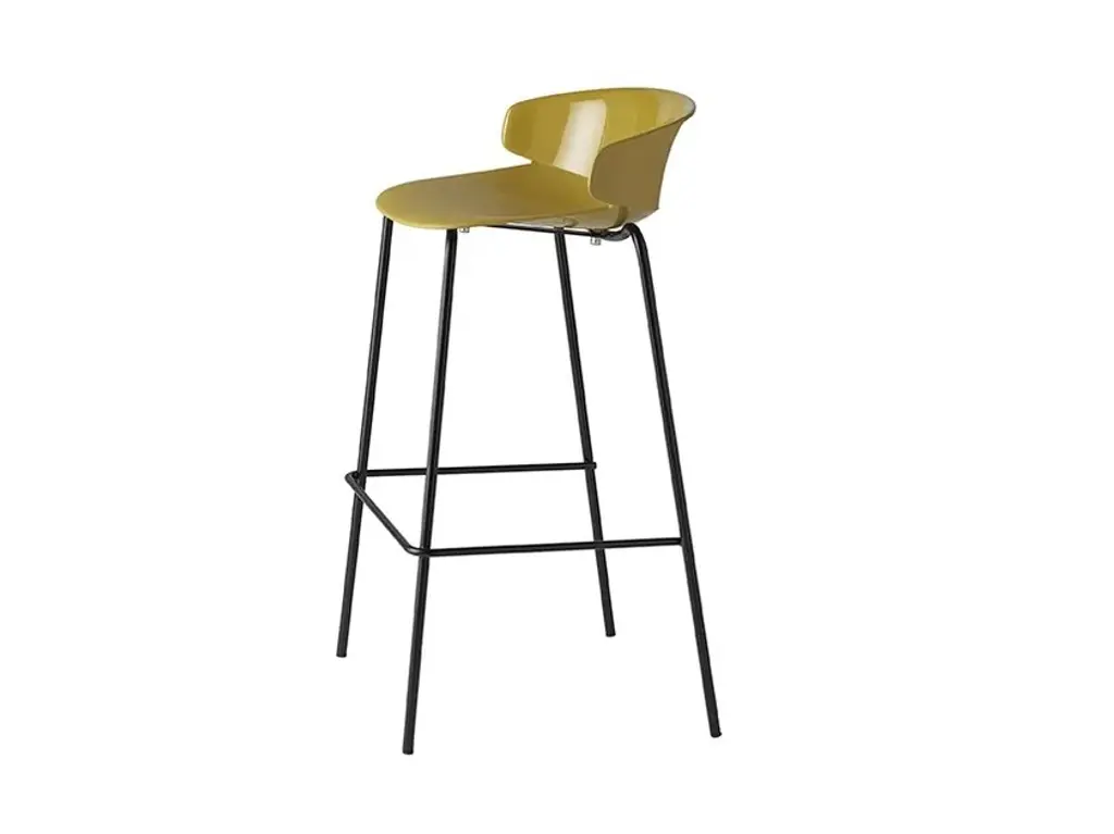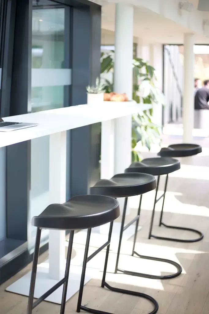 Heidi is a stool with a simple and sturdy construction, inspired by the classic tractor seat and made from powder-coated tubular steel.A powder-coated tubular steel leg adds robustness and makes this stool stackable and competitively priced in the Heidi range. The redesigned base is paired with a new seat made from vacuum-formed ABS and Baydur, an injection-molded resin – the glossy UV-protected finish is durable and suitable for outdoor use.When developing the stool, Wrong focused on comfort and functionality, creating a cantilever base that slightly flexes with movement, making the seat feel very natural – a responsive movement that is uncommon in most stools, which tend to be stiff.Materials:Heat-formed ABS, polyurethane (seat), powder-coated tubular steel (legs)Colours:Gloss black with black frame, Gloss black with grey frame, Gloss white with black frame, Gloss white with grey frame.