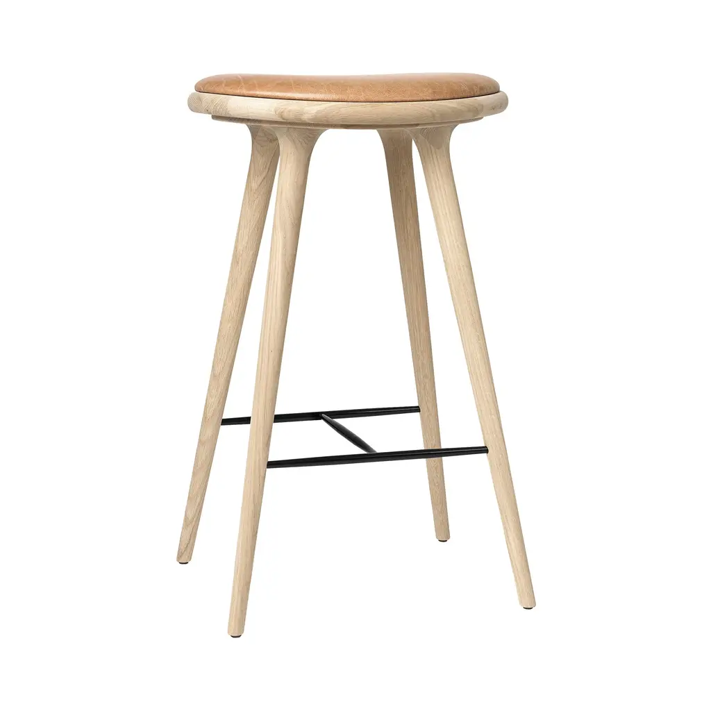 The High Stool from Danish brand Mater beckons with a nuanced take on minimalist style. Its organic silhouette is a subtle update on the classic Nordic heritage from design duo Space Copenhagen. Hewing to Mater's vision of timeless design based on ethical practices, the wood is FSC-certified denoting responsible forestry and it's finished with a water-based stain free of chemicals. In bar or counter height, with padded seat in fine leather.