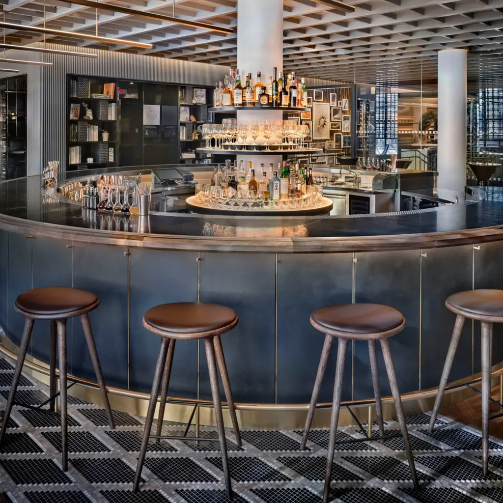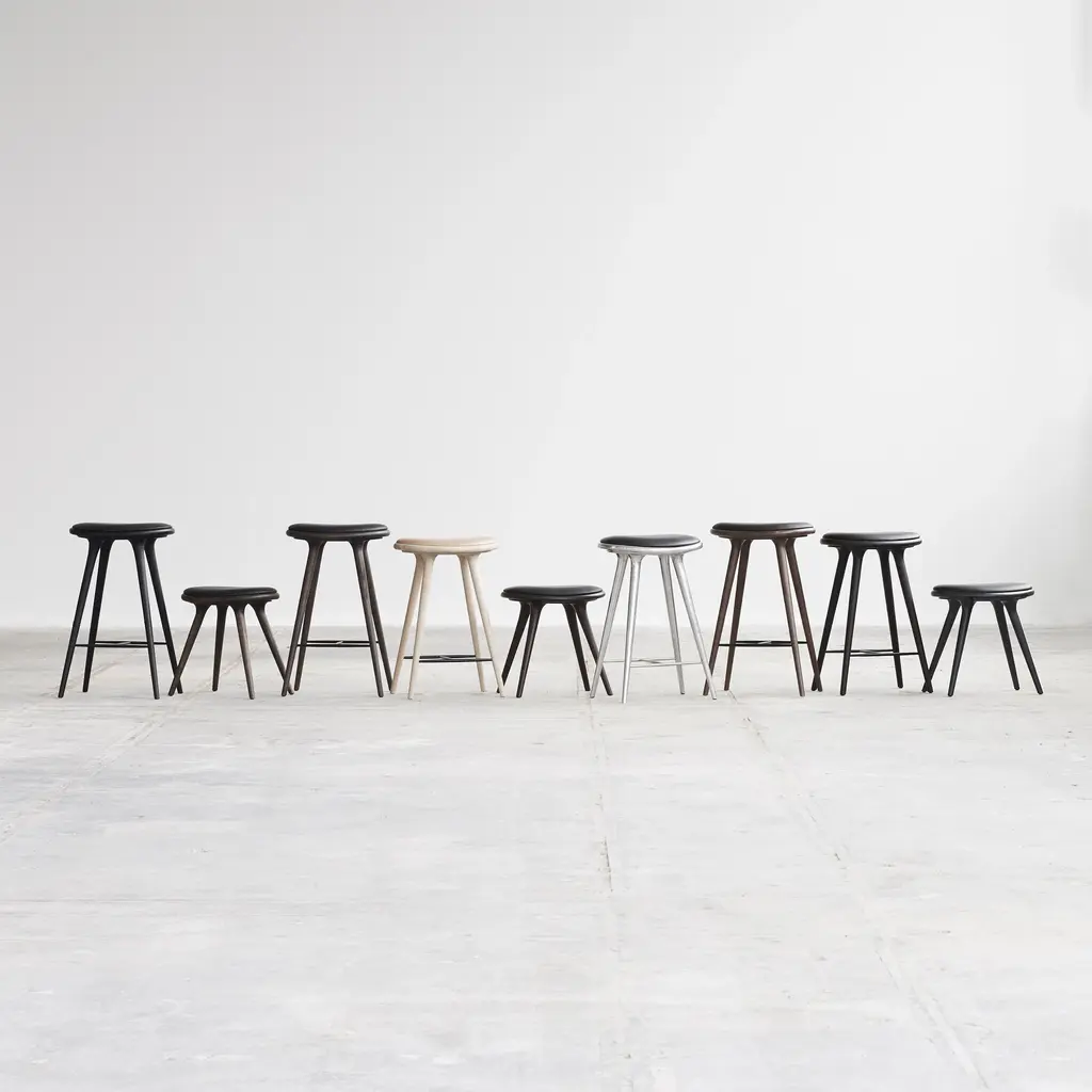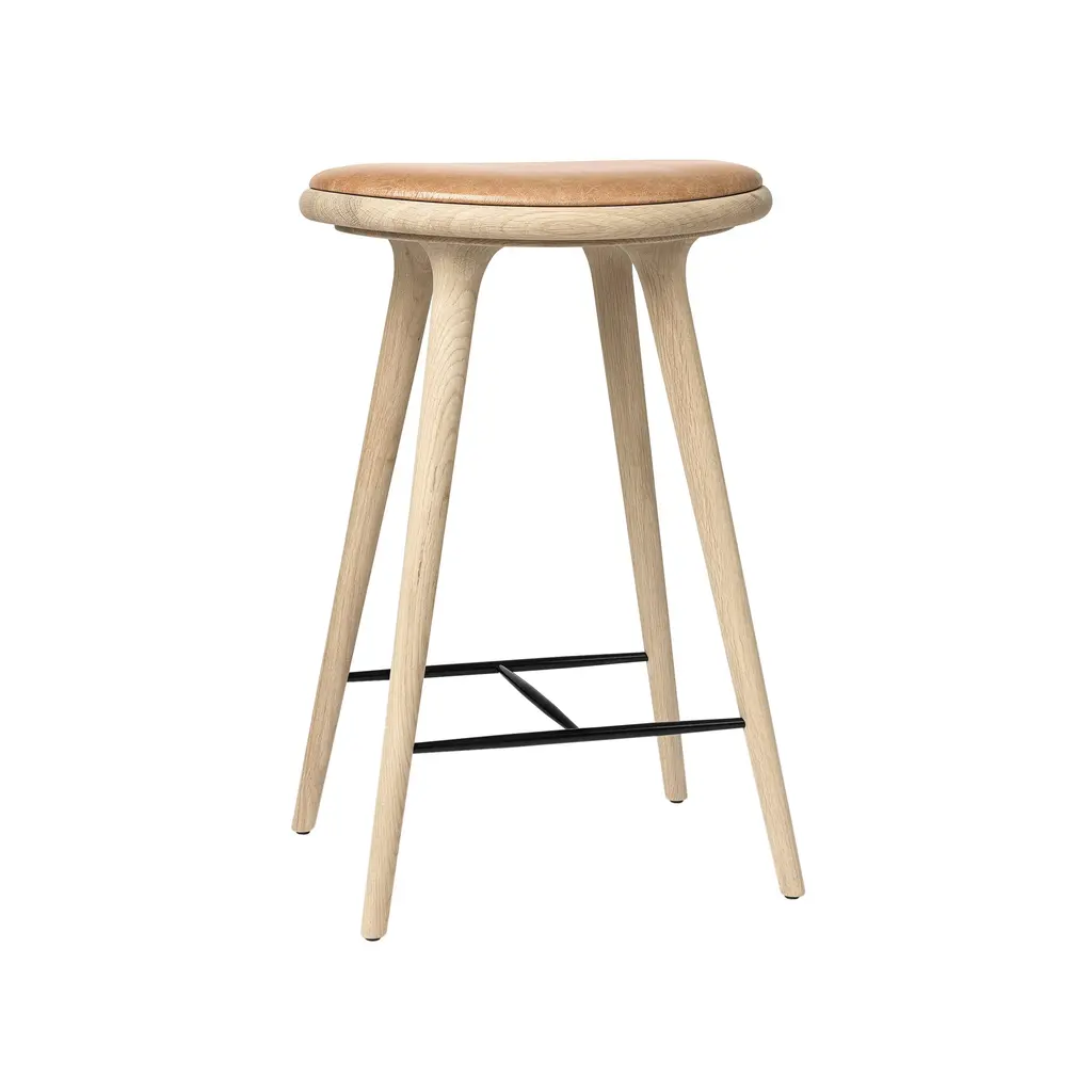 The High Stool from Danish brand Mater beckons with a nuanced take on minimalist style. Its organic silhouette is a subtle update on the classic Nordic heritage from design duo Space Copenhagen. Hewing to Mater's vision of timeless design based on ethical practices, the wood is FSC-certified denoting responsible forestry and it's finished with a water-based stain free of chemicals. In bar or counter height, with padded seat in fine leather.
