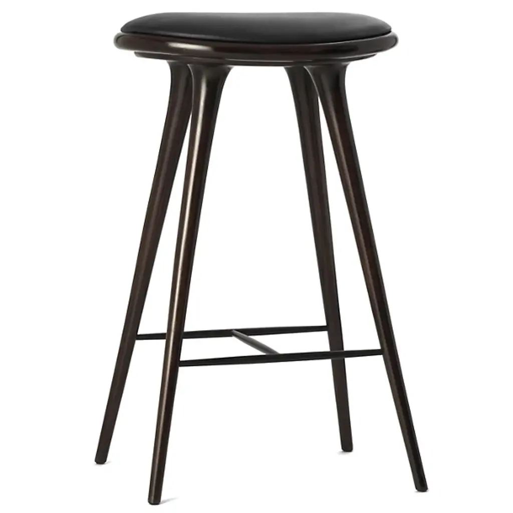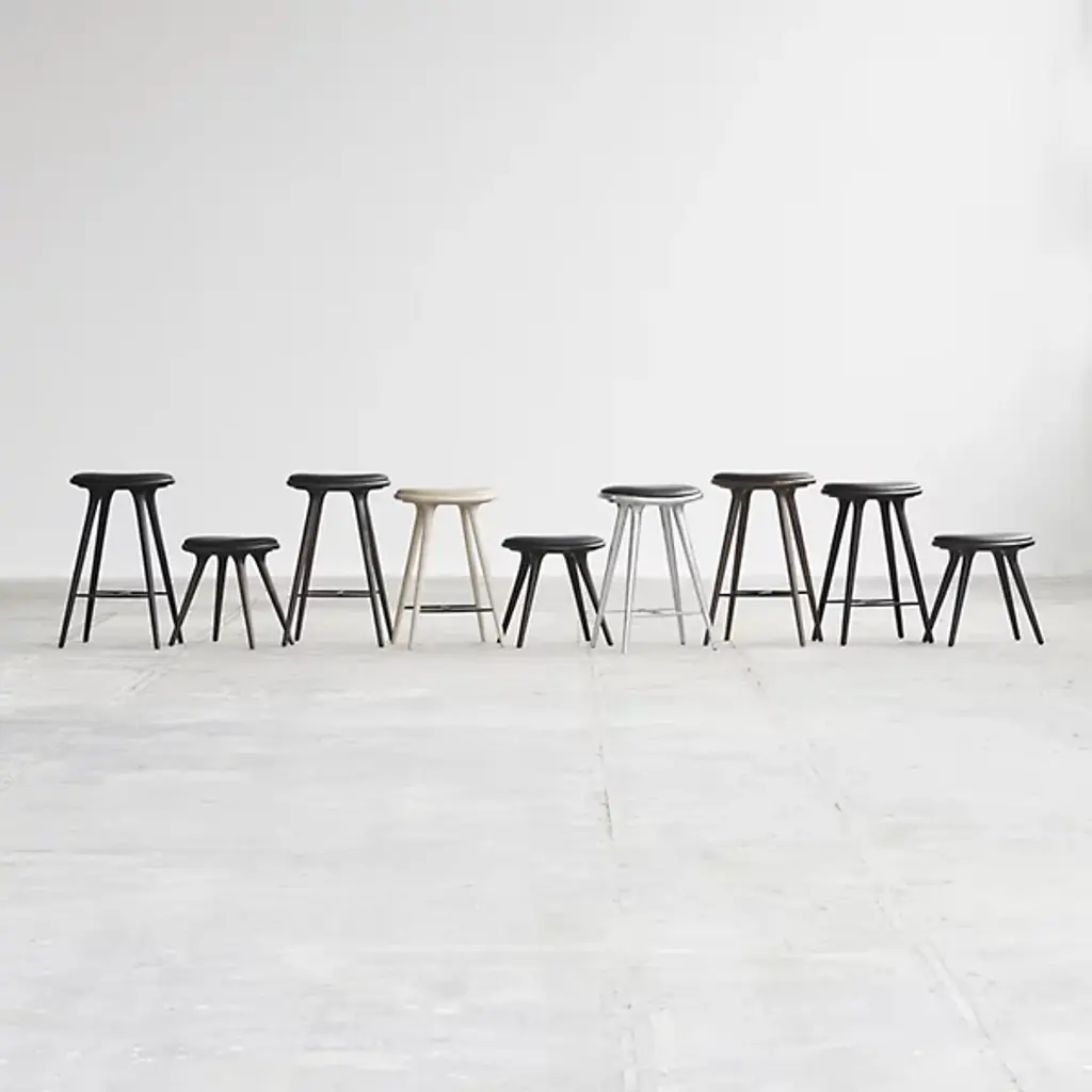 Organic yet minimal, the Mater High Stool epitomizes the new class of Danish design. The base is made out of solid, FSC-Certified beechwood coated in a water-based stain. It is topped with a soft seat made out of genuine black leather. All-in-all, a versatile design suitable for installation in residential or hospitality settings.