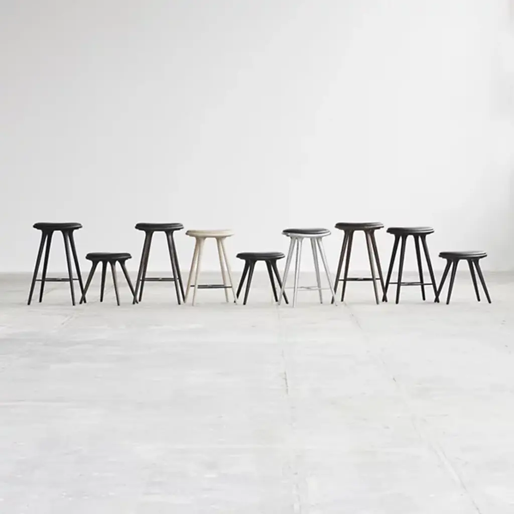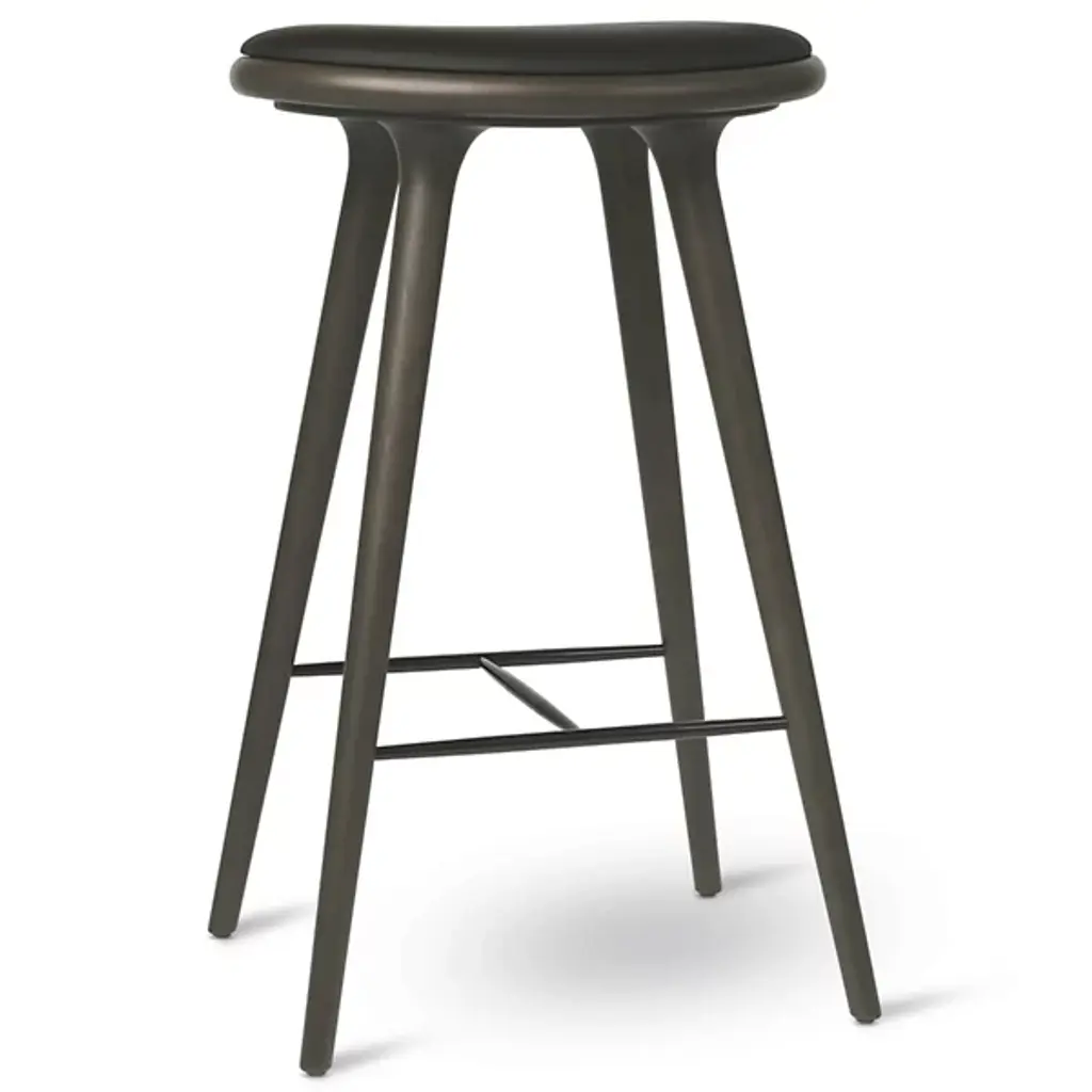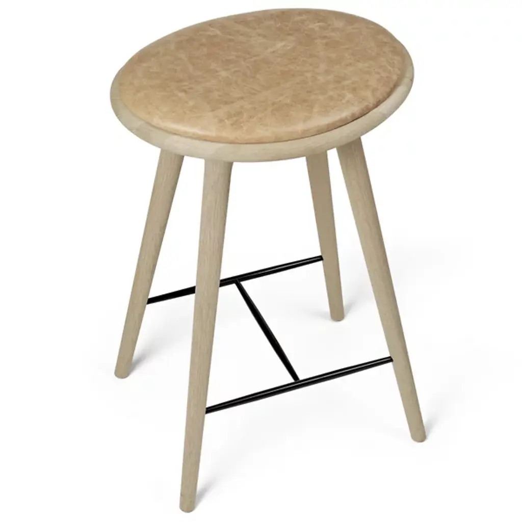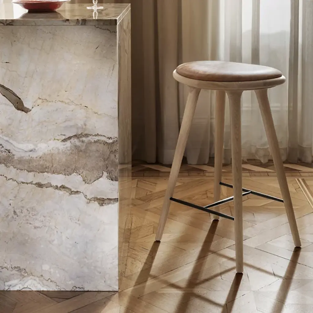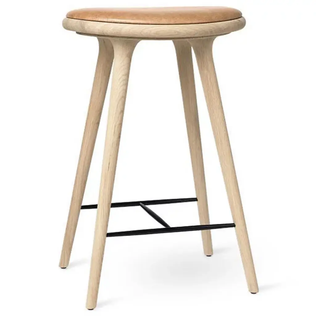 The Mater High Stool - Premium Edition improves on the clean, organic lines of the original High Stool with the intricate grain of solid oak. The FSC-Certified wood is coated in a water-based stain that lets the grain pattern show through--and enhances it. The base is topped with a supple seat of genuine leather.