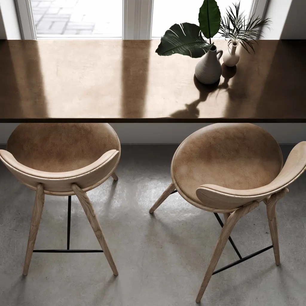 Experience comfort like never before in Space Copenhagen's High Stool with Backrest from Mater. Crafted with an elegantly curved, archetypal silhouette, the undeniably luxurious backrest and seat is upholstered in a soft, durable leather that provides a superior level of comfort – eliminating any need for armrests. Highlights