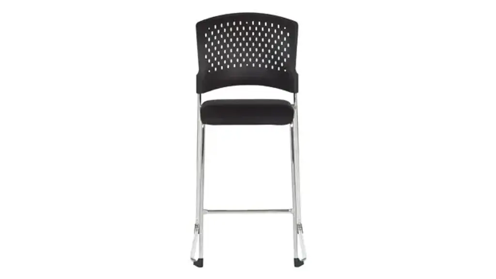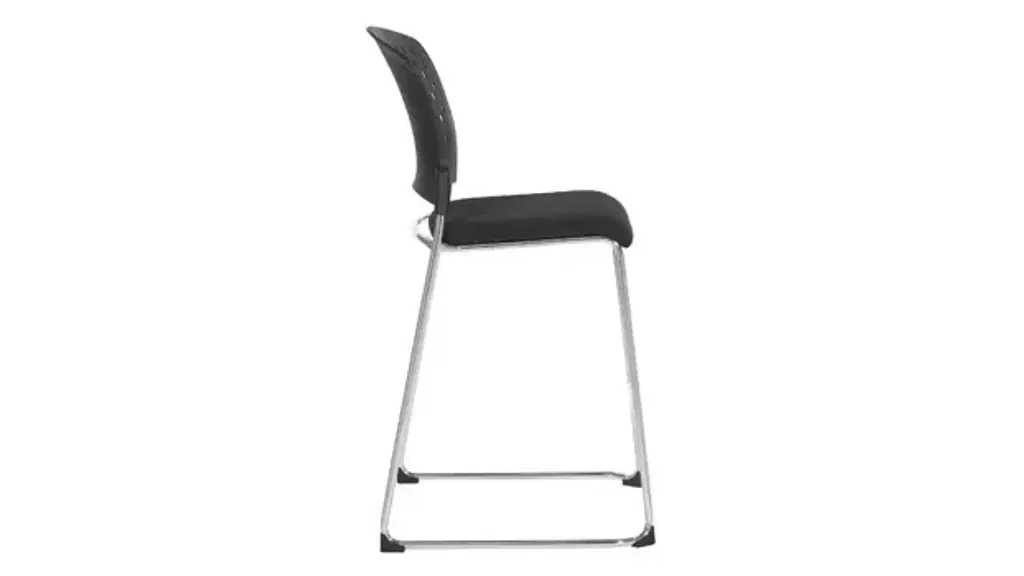 Introducing the Shea Series Stool without Arms! Say goodbye to cluttered meeting rooms and cramped breakrooms, and welcome the spaciousness and comfort that these stools provide. This 23 pack of stools includes a dolly for easy movement of the stools in your facility. Crafted with a sturdy chrome metal frame, these chairs are built to last. The ventilated plastic back allows for air flow in the chair, while the Black FreeFlex padded fabric seats provide the utmost in seating comfort. Stackable so that you can save space when not in use.