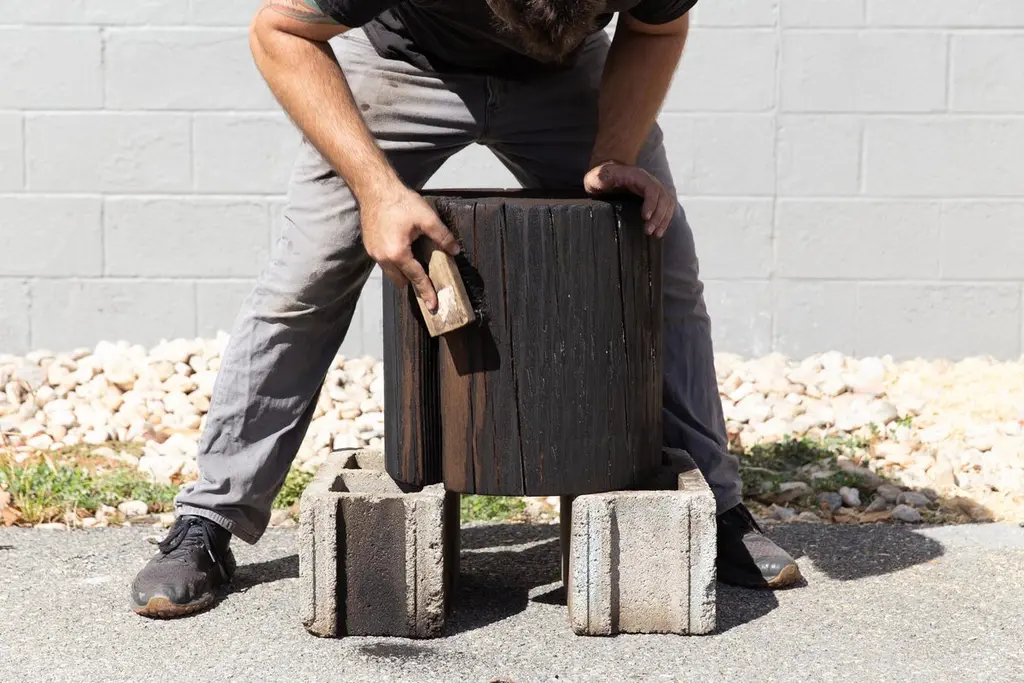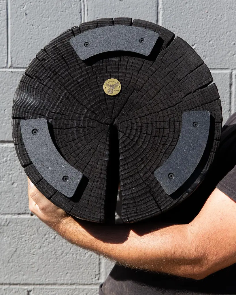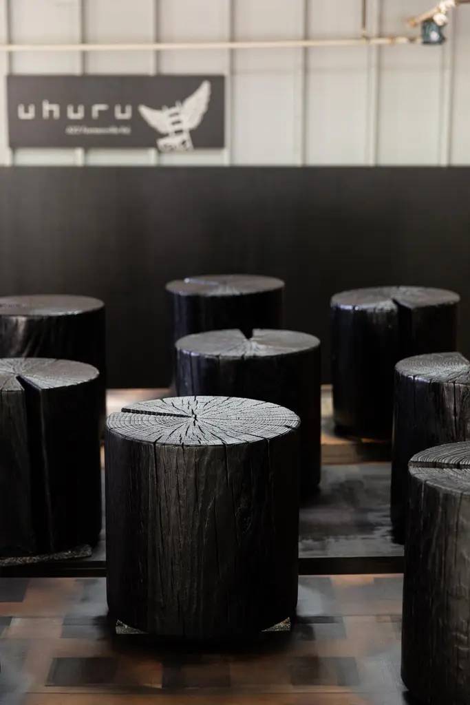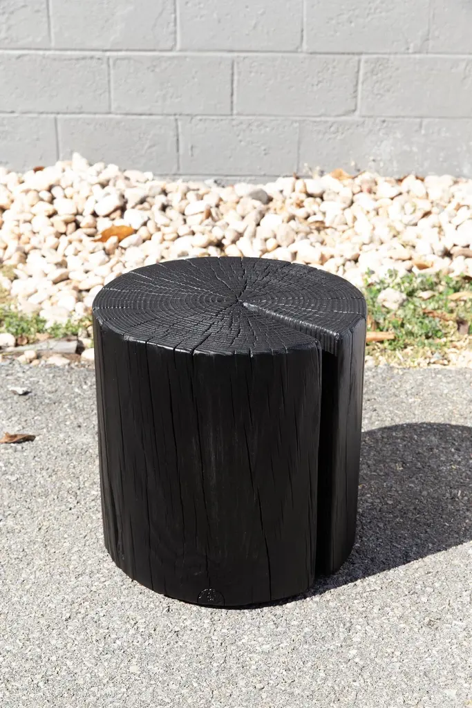 The Hono stool started with our rediscovery of Shou Sugi Ban, an ancient Japanese burning technique that preserves wood through charring. Inspired by the method's resulting rich color depth, authentic texture, and it's traditional use to weather-proof wood, we adapted the application to be environmentally safe and durable.Stools are meticulously hand-charred, then finished with a non-toxic clear coat. Our Hono stools showcase the narrative of this ancient method and highlight one of the earliest methods of wood preservation.-Each stool is cut from a different log, so variations are natural and celebrated. -Each item is unique and no two are exactly alike. Images may vary from your actual piece.-Solid pine, charred using the Shou Sugi Ban method.-Each stool features a pie-shaped "check", that varies in size.-Finished with a non-toxic, protective clear coat.-Plastic gliders on base protect surfaces and allow for ease in moving.-Each Hono Stool is hand made in small batches in our PA studio.-Ships fully assembled.