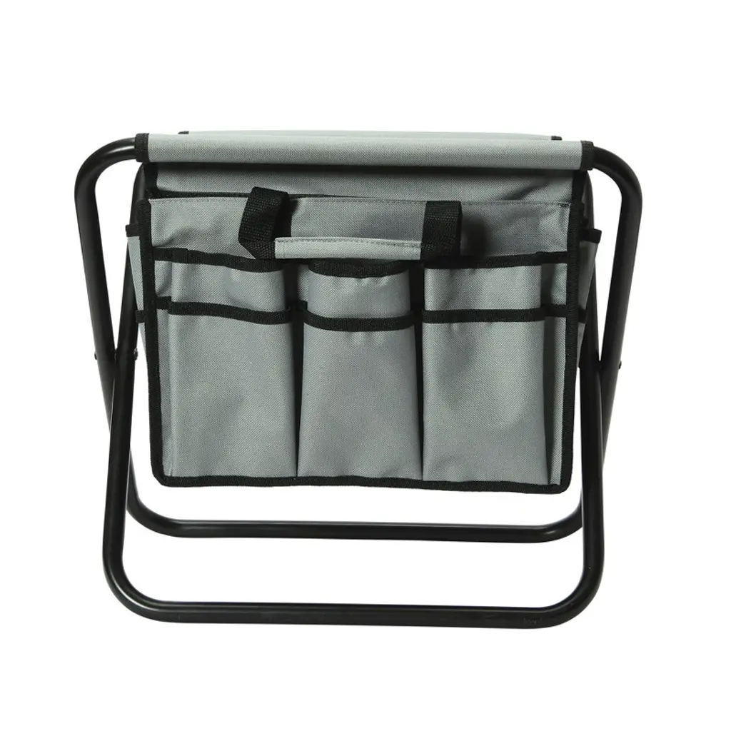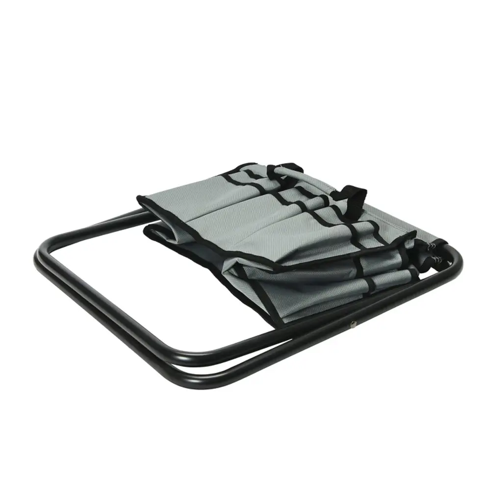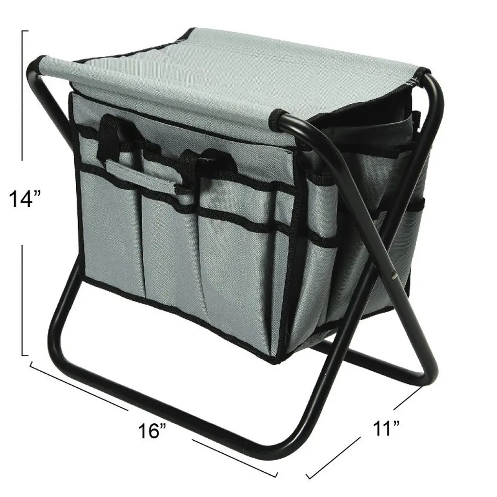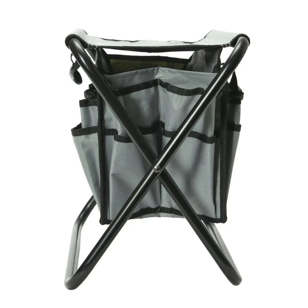 Make use of this utility stool during your next DIY endeavor by storing tools and supplies in the 20 integrated pockets, transporting from location to location with 2 attached handles, and easily collapse the durable frame to save space when not in use; Canvas may be removed from steel frame and used as a versatile tool bag; Made from canvas and steel; Stool measures 15.5" L x 10.5" W x 13.5" H