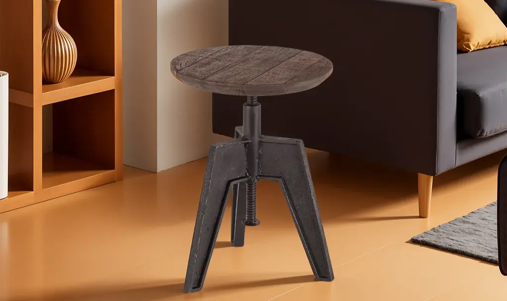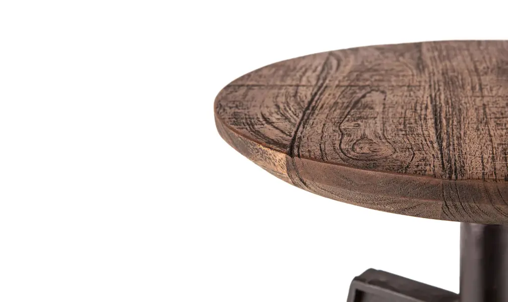 The Carnegie Round Adjustable Stool in Bandsaw Teak combines the robust qualities of mango wood with the strength of cast iron. The stool's adjustable height feature makes it a practical choice for various seating needs, whether at a counter or a bar. The Bandsaw Teak finish brings out the wood's natural grain, giving it a warm, rustic appeal that pairs well with industrial and vintage-inspired interiors. The stool’s clean lines and sturdy construction highlight its functional design, ensuring it serves as a reliable seating option. Crafted with sustainability in mind, the Carnegie stool is made from responsibly sourced mango wood, known for its resilience and durability. The hand-forged iron base not only adds to its stability but also enhances the stool's industrial aesthetic. Combining these materials results in a piece that is visually appealing and built to last, making it a solid addition to any home or commercial space.