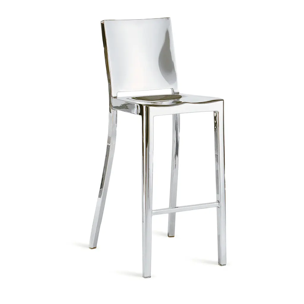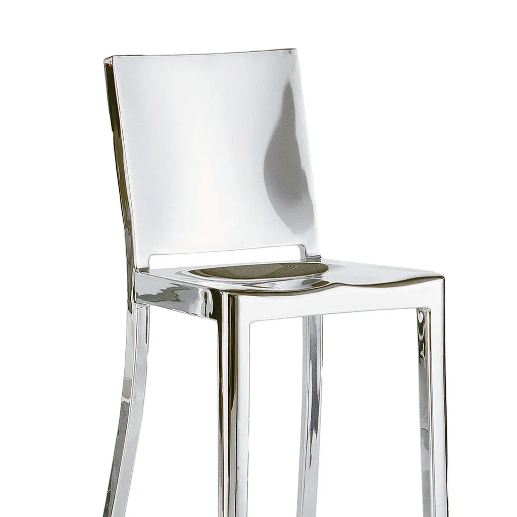 Hudson by Philippe Starck, 2000 A timeless piece, built for lifetimes of use, to be kept, cherished and passed on for generations. Made to order. Built by hand from 80% recycled aluminum in Hanover, Pennsylvania by our most skilled craftsmen. Guaranteed for life. The Hudson, designed for the Hudson hotel in NYC, is Emeco and Starck’s first collaboration. Starck described the chair as “washing the details from the Navy Chair”. Hudson is in MoMa’s permanent collection. Standard glides: soft plastic TPU glides for all-around use, including outdoor use. Alternative glides available at an upcharge.