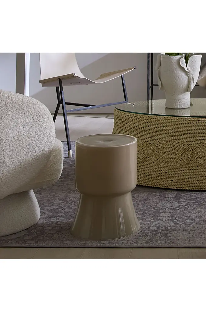 Huntington Garden Glass Stool, Taupe