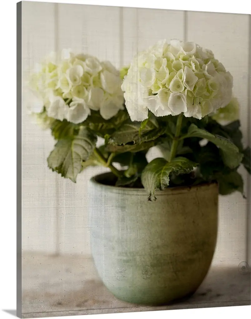 Hydrangea on a stool wall art for home and office decor. Discover canvas art prints, photos, mural, big canvas art and framed wall art in GreatBigCanvas.com's varied collections.