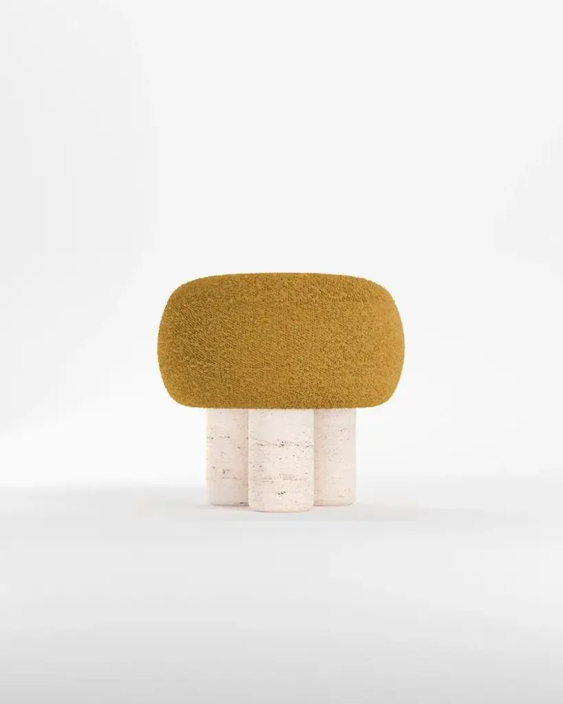 Hygge Stool Boucle Mustard Fabric And Travertino By Saccal Design House For Collector