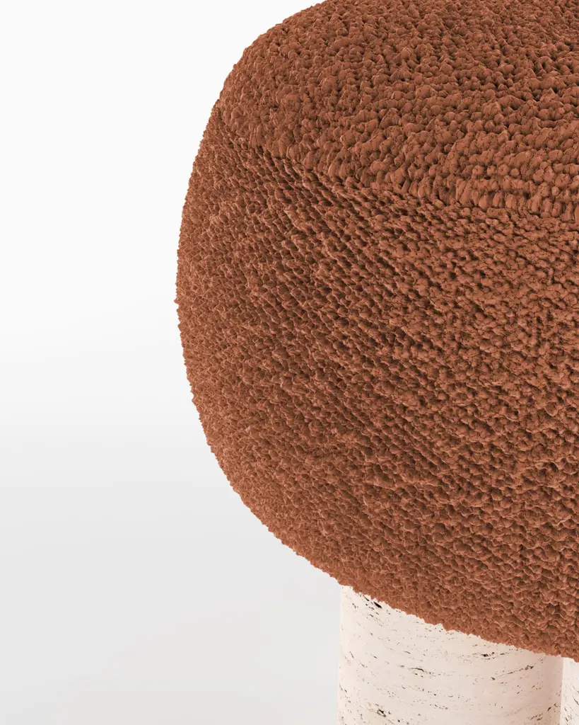 Hygge Stool Designed By Saccal Design House Bouclé Burnt Orange Travertino