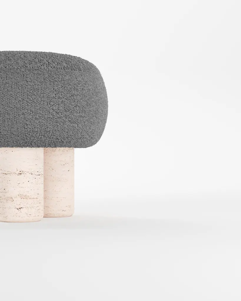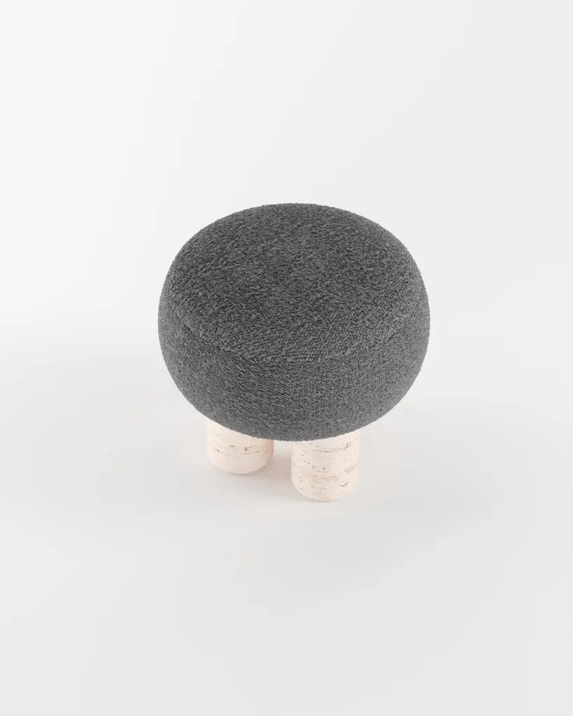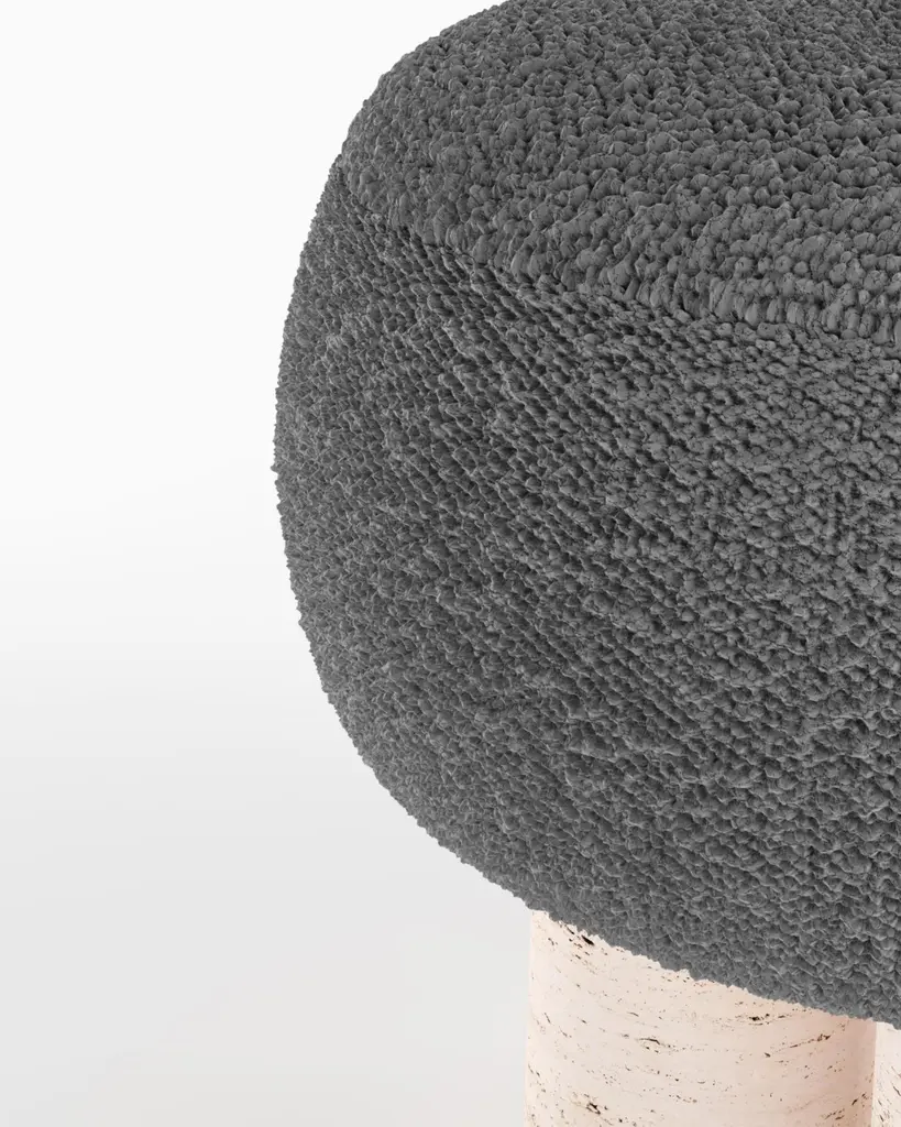 Hygge Stool Designed By Saccal Design House Bouclé Charcoal Grey Travertino