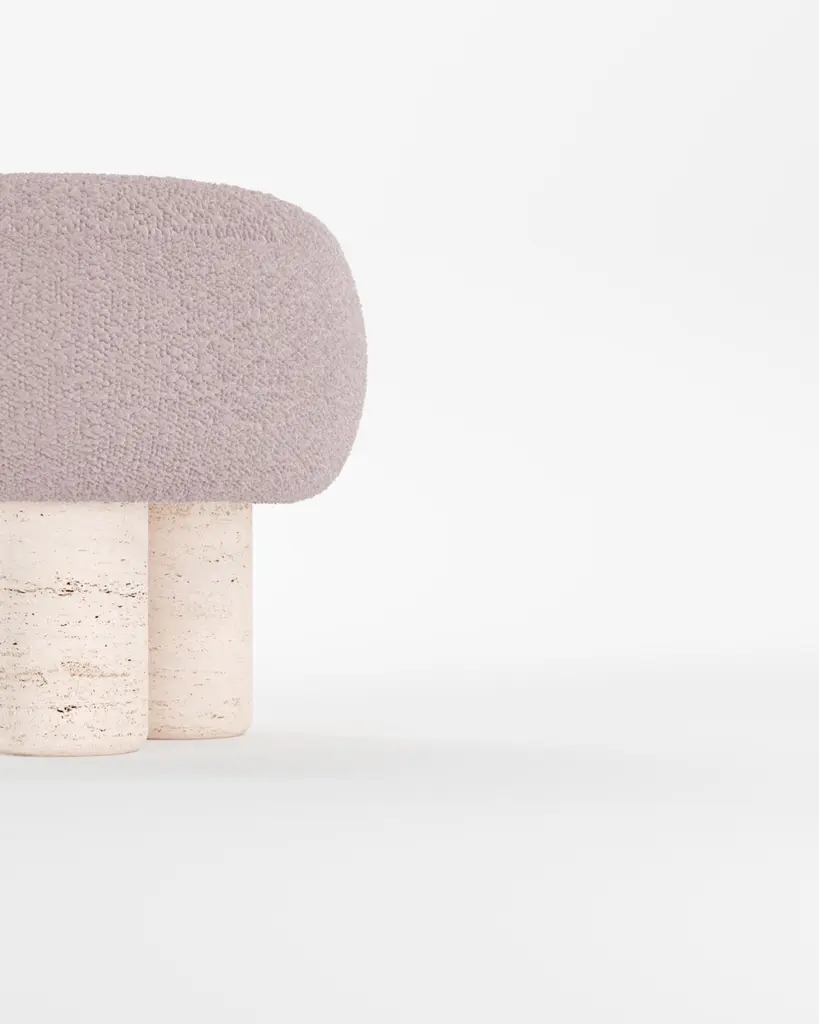 Hygge Stool Designed By Saccal Design House Bouclé Rose Travertino