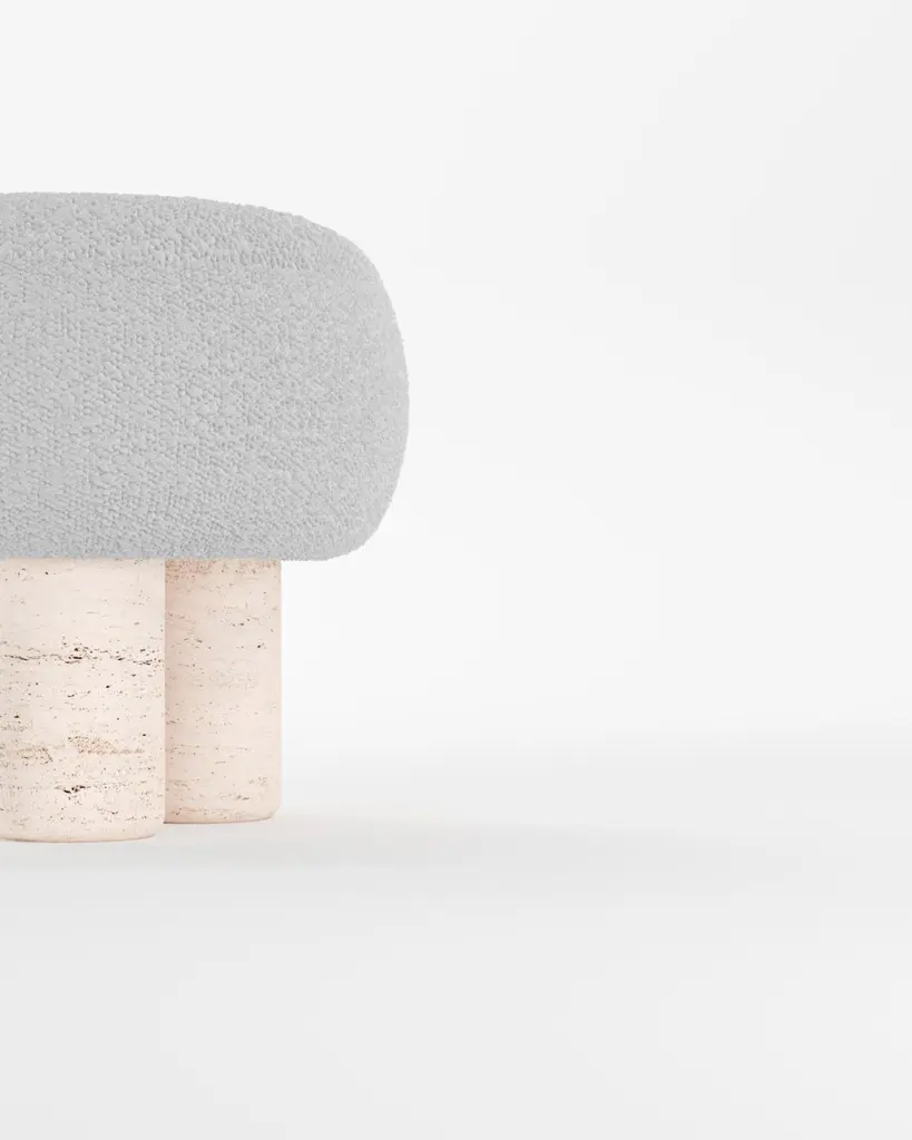 Hygge Stool Designed By Saccal Design House Bouclé White Travertino