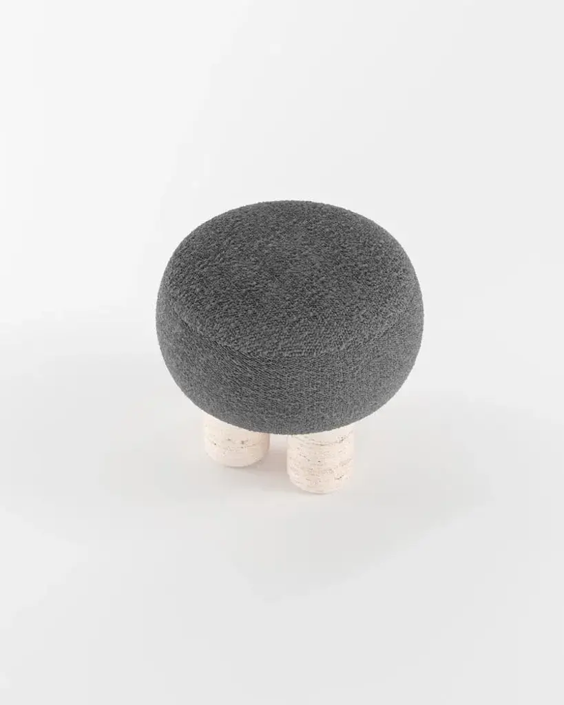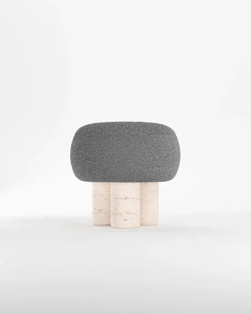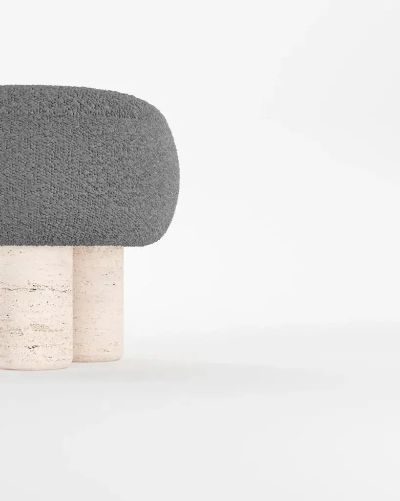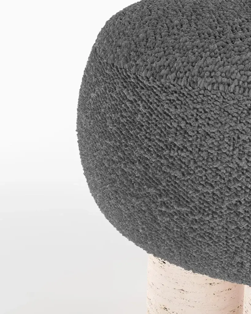 Hygge Stool In Boucle Charcoal Fabric And Travertino By Saccal Design House For Collector