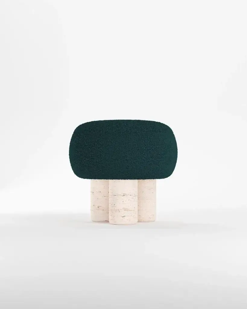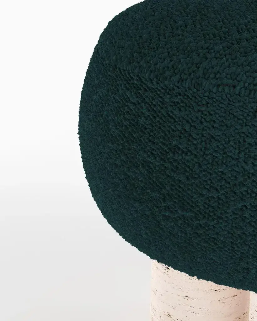 Hygge Stool In Boucle Night Blue Fabric And Travertino By Saccal Design House For Collector