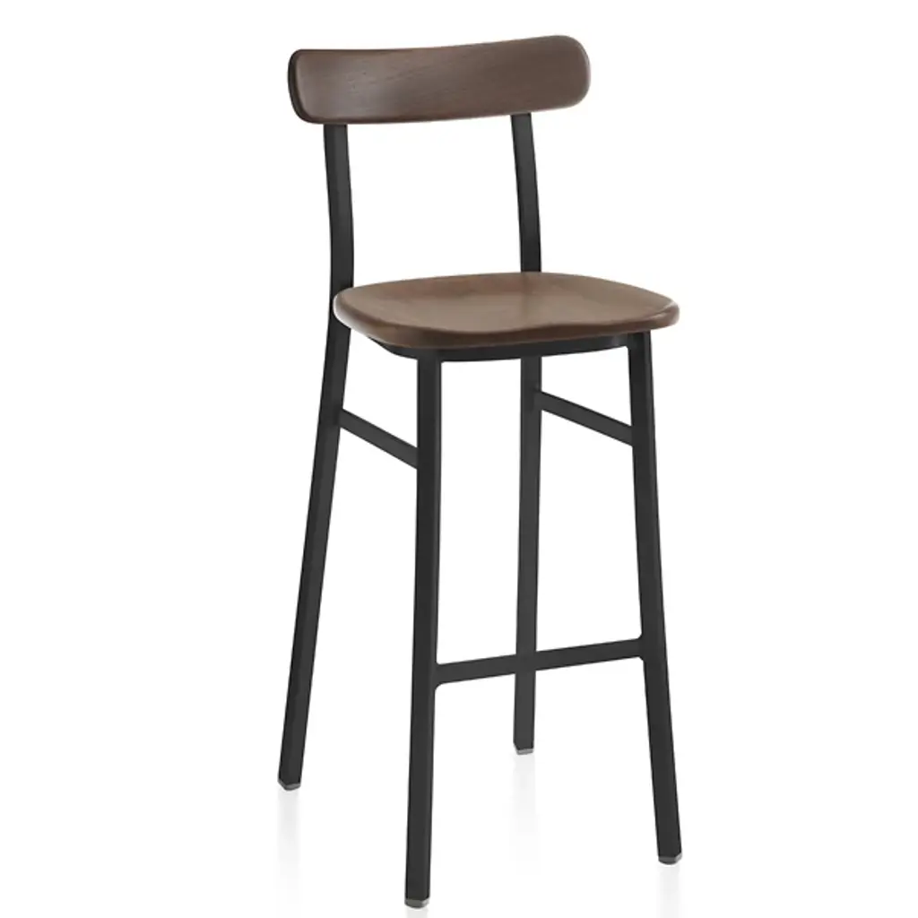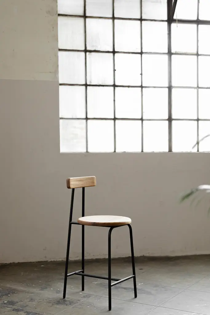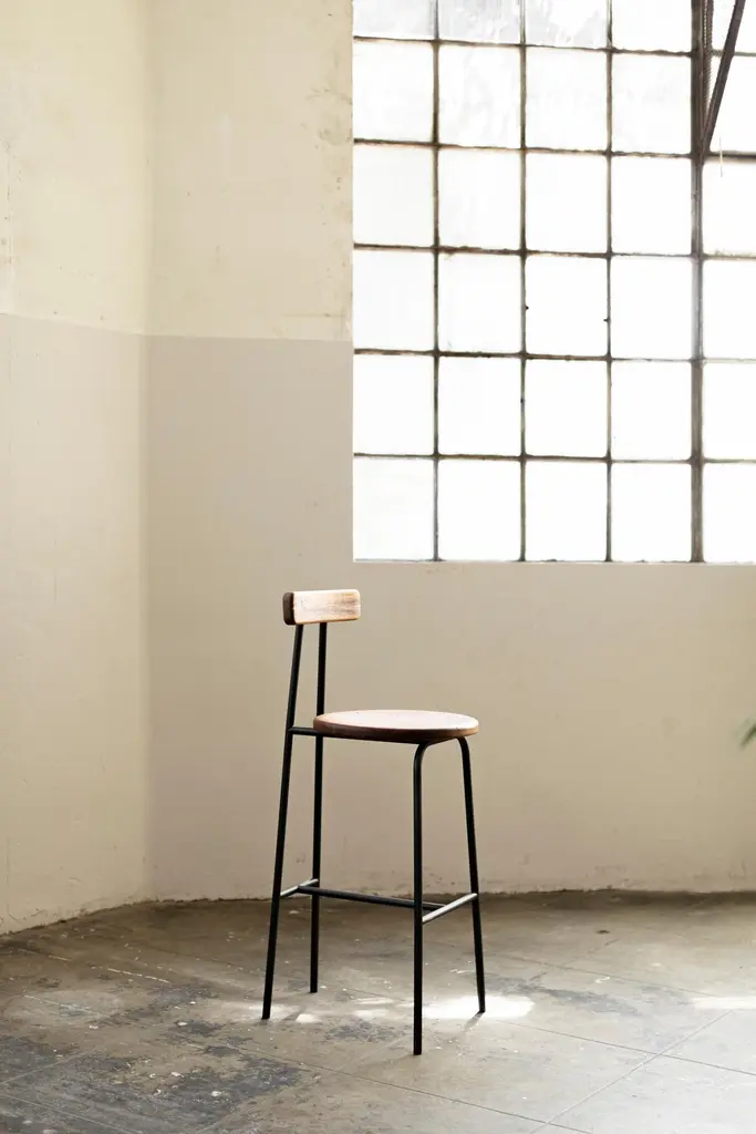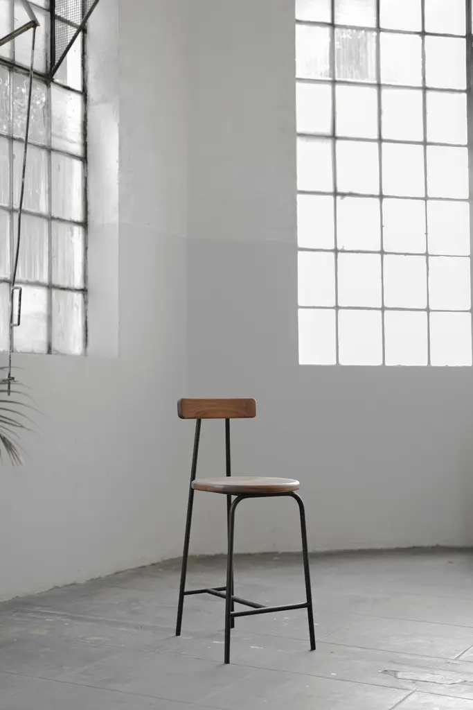 I collection wooden stool with metallic structure made of oak or tzalam wood.