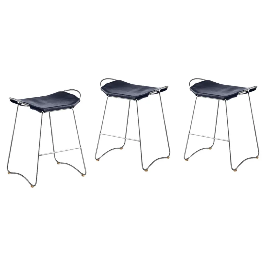 Ian White 26" Stackable Faux Leather + Black Metal Frame Counter Height Stool Set Of 3 | Armless