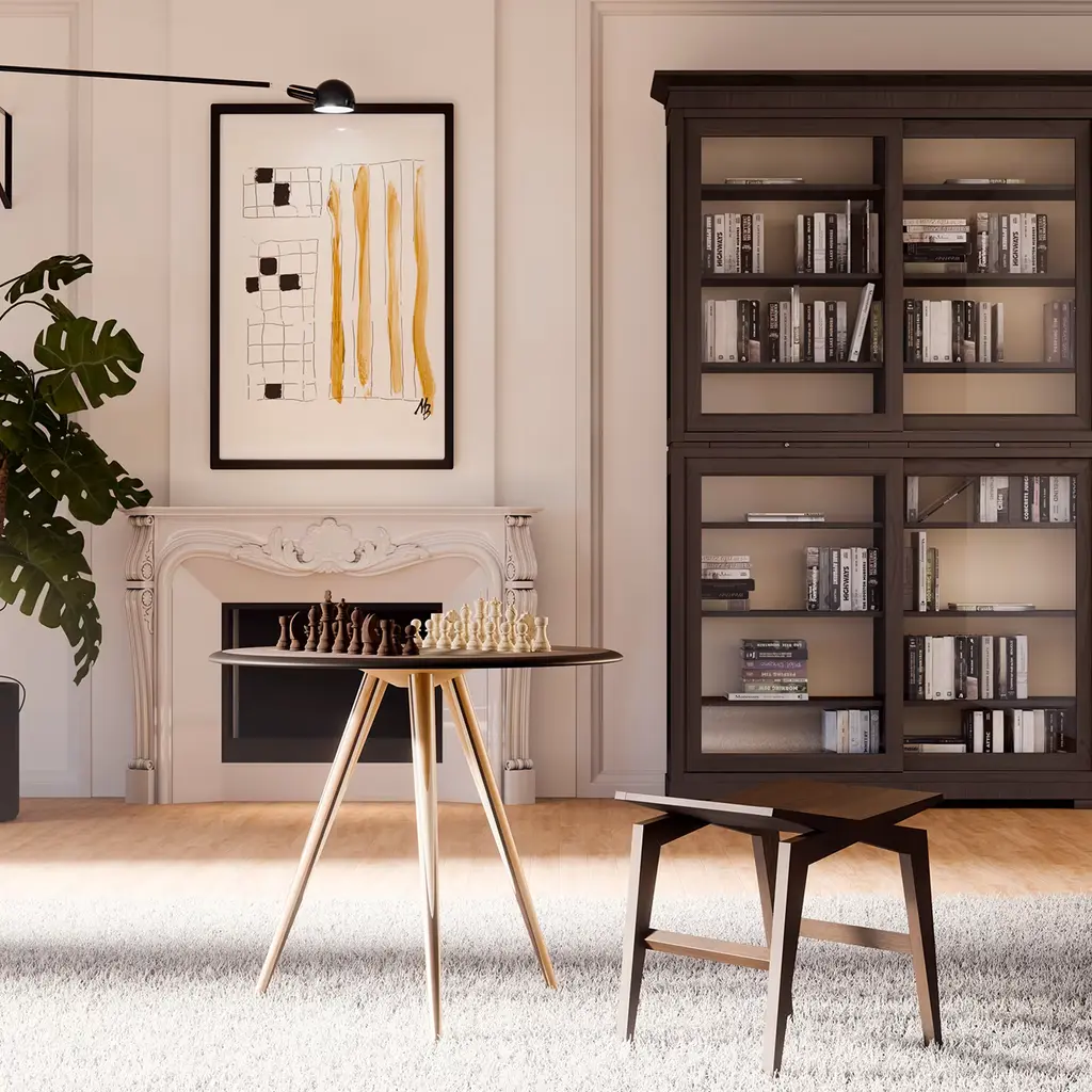 Timeless architectural sophistication merges with contemporary design in this extraordinary design by Itamar Harari, boasting a singular geometric shape handmade of ash wood. An iconic and distinctive accent to a modern living area, please consult the Concierge for further information and customization options.