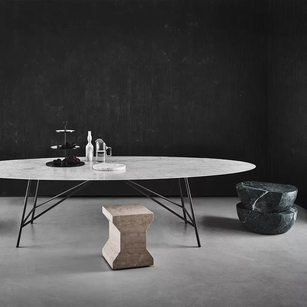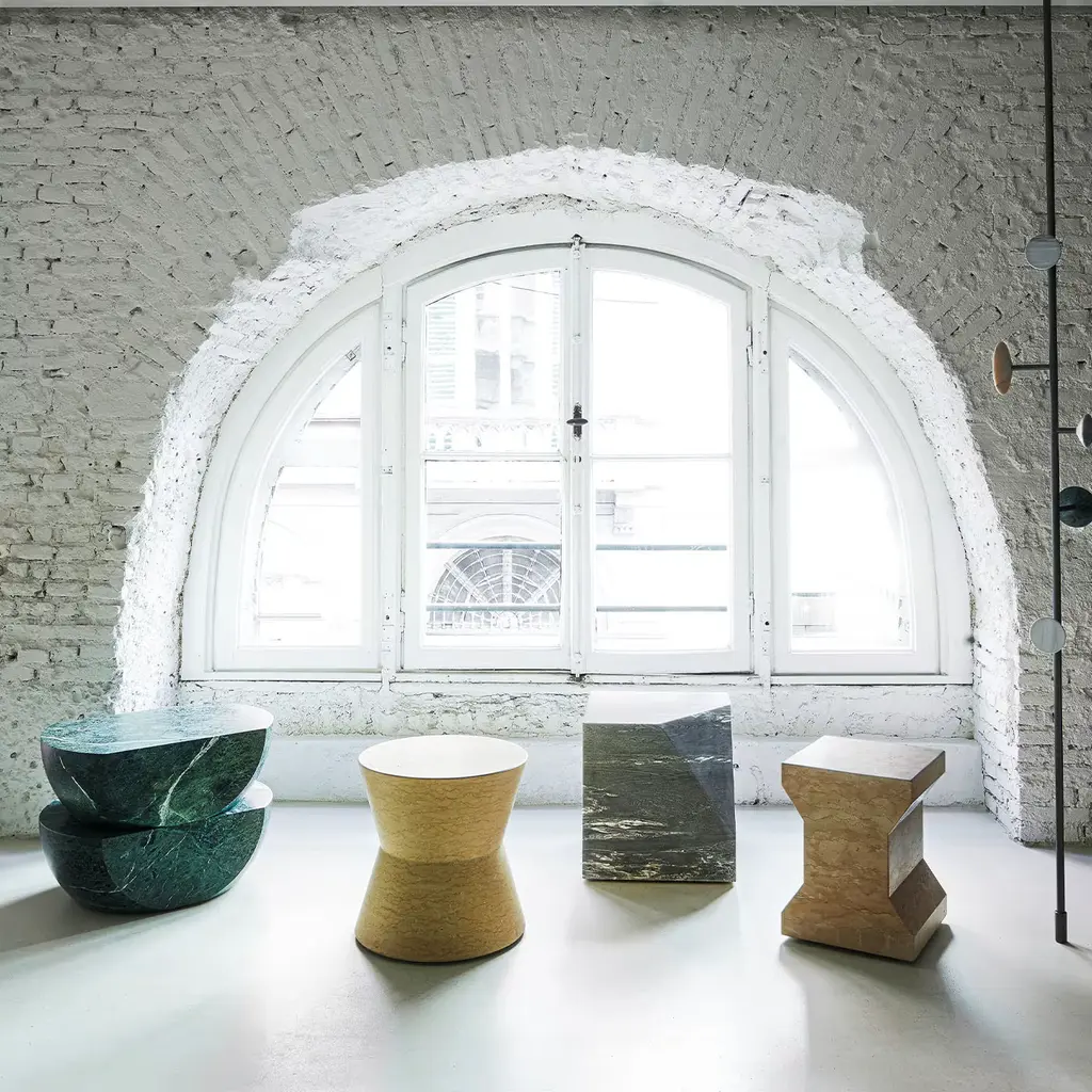 Distinctive in its unconventional three-dimensional form, the Ikona stool stands as a striking example of geometric design. Designed by Elisa Ossino, this piece combines natural stone with a touch of raw beauty. Available as stools or coffee tables, Ikona adds a vibrant accent to any indoor or outdoor setting, blending creative geometry with the enduring allure of natural materials.