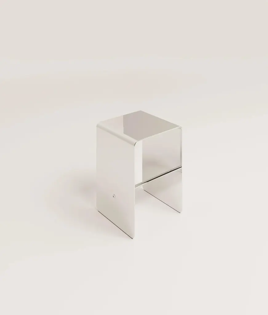 Designed By Joana TeixeiraA piece of design that transcends mere functionality. Crafted from polished stainlesssteel, this stool is more than just a place to sit-it’s a captivating statement piecethat transforms its surroundings. The Imaginary Object stool is no ordinary seating;its reflective surface captures and mirrors the environment around it, creating amesmerizing visual effect. It can also be used as a side table.Materials: Polished Stainless SteelNumbered Pieces