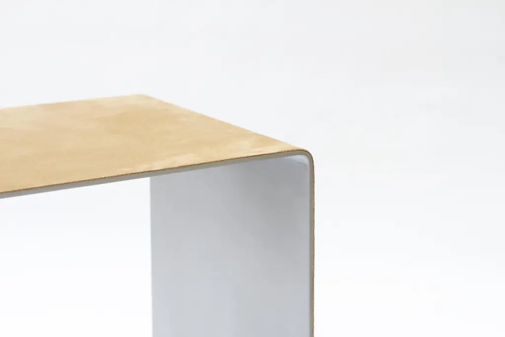 The Segment stool is part of the Segment collection: a series of pieces that intend to break down a homogenous piece and ask the question of how to produce several products composed of parts that have a similar understanding between each other.Made of waxed aluminum, wrapped in suede.Handmade to order in Los Angeles, CA.