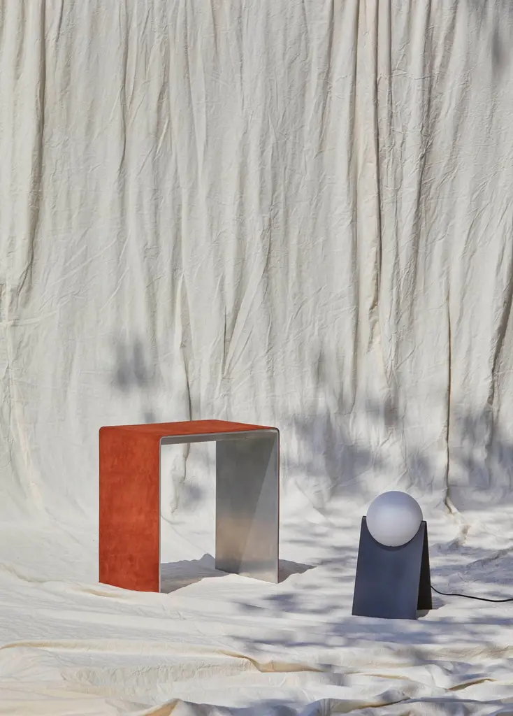 In Stock, Segment Stool In Aluminum And Suede By Estudio Persona