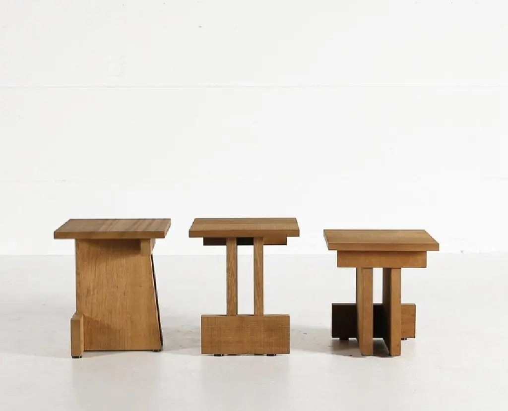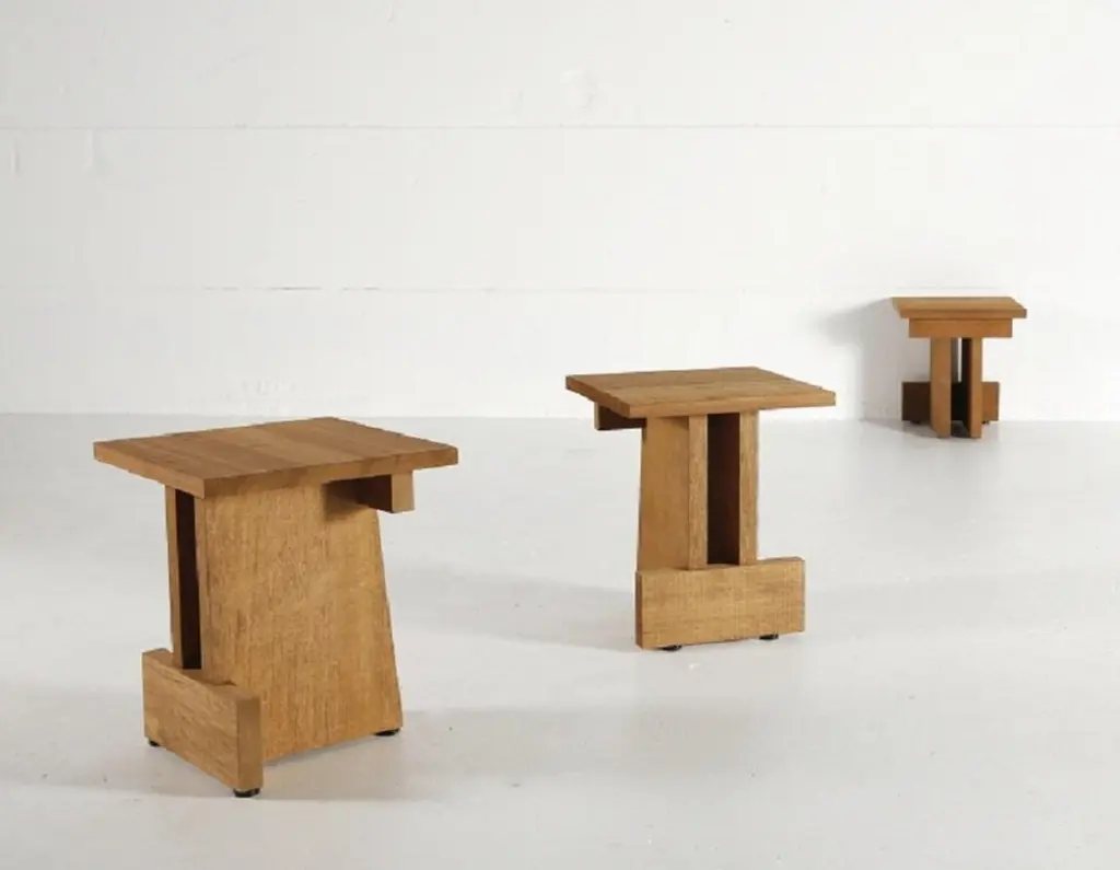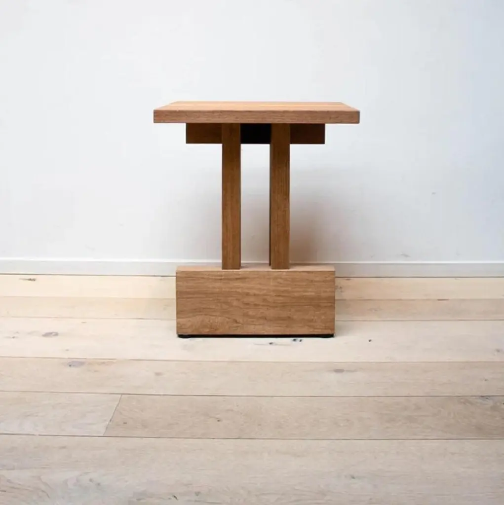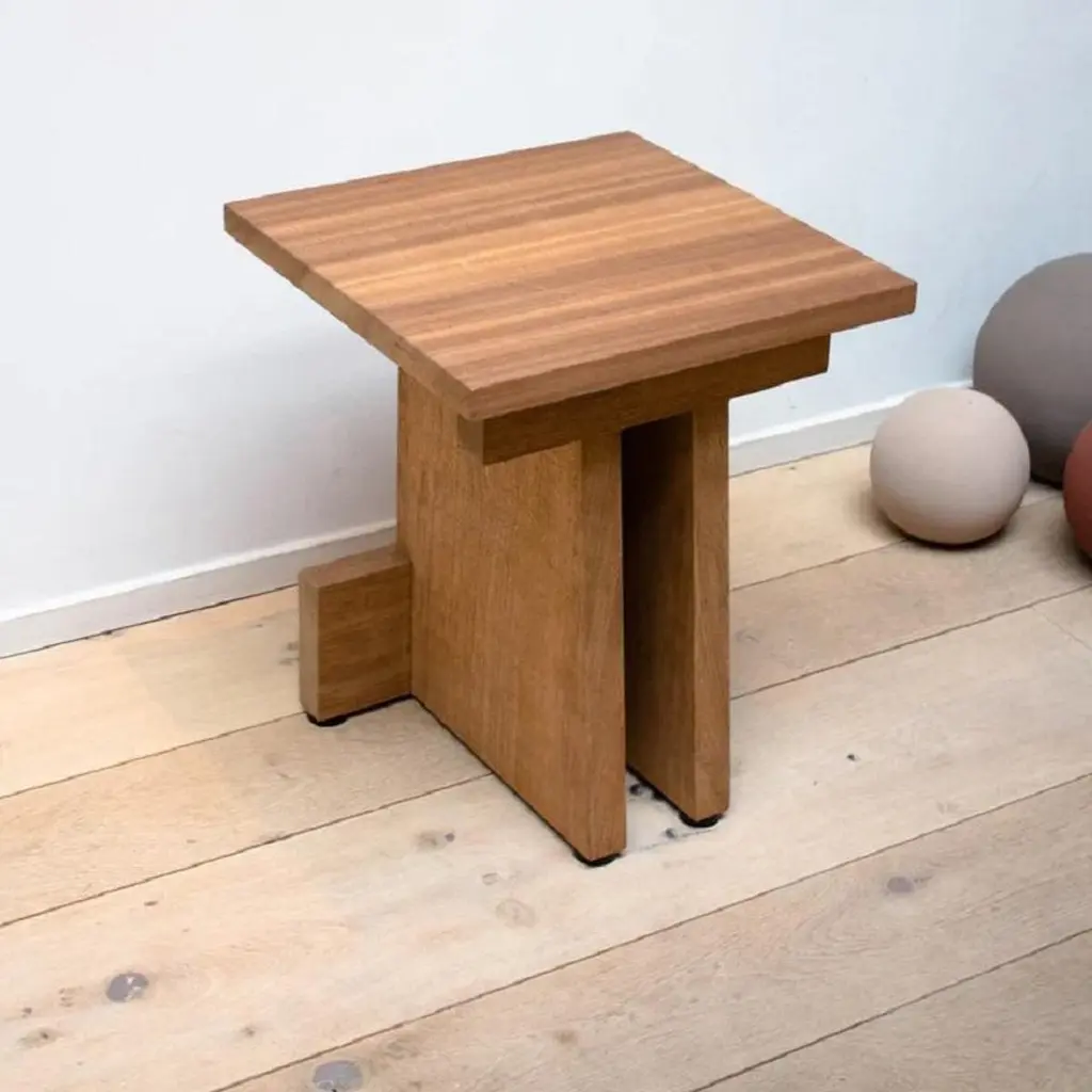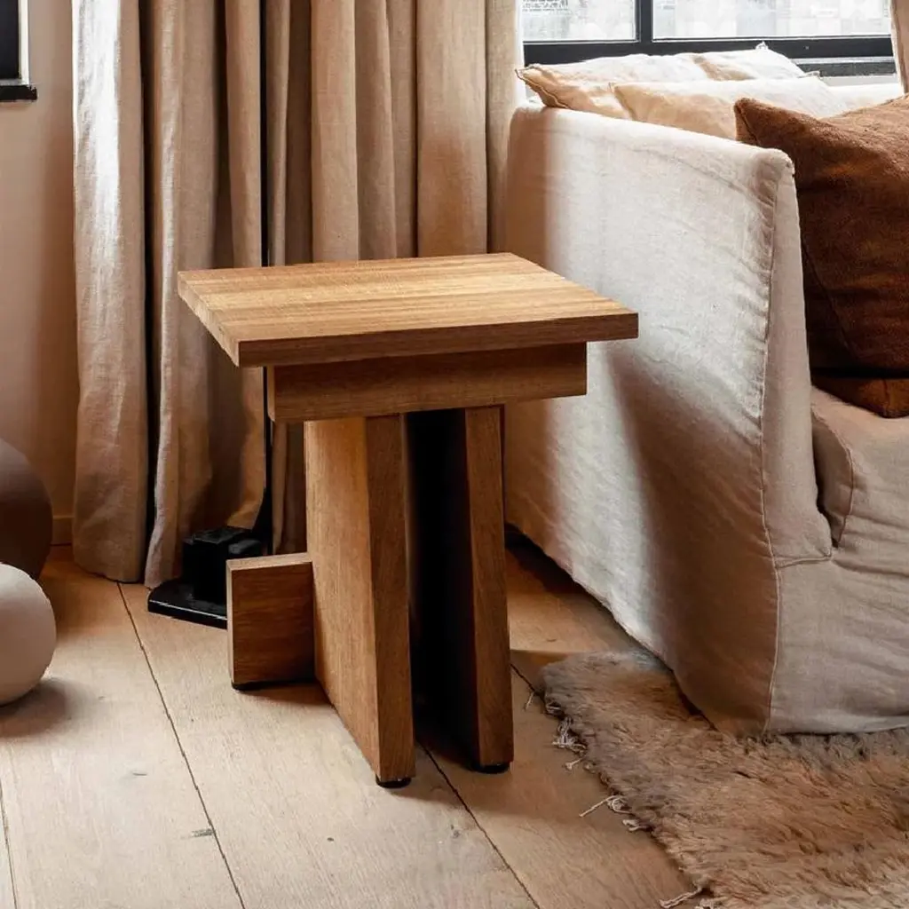 Made from thermal treatment Fraké which is graded with durability class A and therefore perfectly suitable for outdoor applications. This is a sculptural eye-catcher that can do it all: use it as a stool, bedside table or handy side table to add that finishing detail to your interior. Its brutalist silhouette will add minimalistic charm to any interior style. Set of 2 stools.This item is made of solid wood. Any movement in the wood, little cracks and color changes that might occur over time cannot be considered grounds for complaint. The changes are not imperfections in the material, but rather a natural settling of the wood in reaction to various environmental conditions.Similarly, the possible appearance of marks on the surface of the product is a perfectly normal reaction for solid wood. Email us for additional care and maintenance informationMade to measure, where almost any size is possible.Please contact us if you have any questions about customization and pricing. We will be glad to check with the factory’s technical team if sizes, finishes, and colors can be customized. “A typical characteristic of furniture made from natural wood is the potential for resin leakage, particularly from the underside of the piece. To prevent issues such as staining or resin absorption, we recommend avoiding placing new wood furniture on carpets or soft surfaces that limit ventilation, especially during the first few months after purchase. For best results, keep the furniture in a dry and well-ventilated area to allow the wood to acclimate properly.”We do our best to expedite production and to ship and deliver product within the listed lead time, however current lead times might be longer due to global shipping backlog and delays. These delays are out of our control and cannot be a reason to cancel an order.