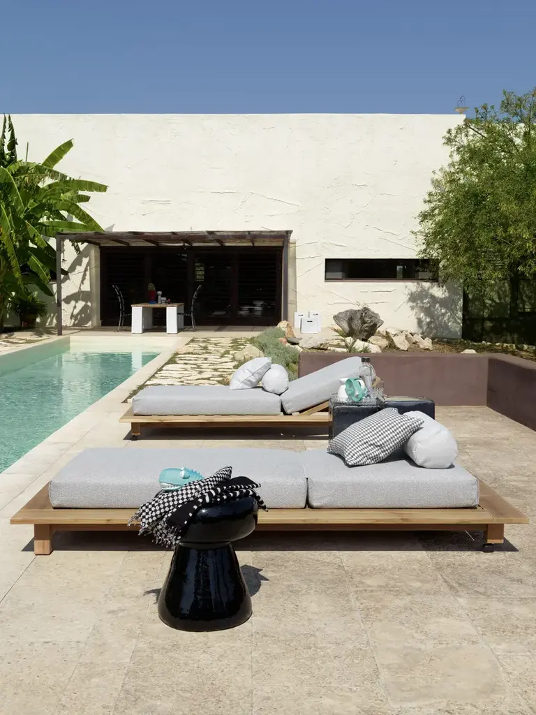 Inout 44 è un tavolino-pouf realizzato in cemento GFRC nero, bianco, grigio antracite o bianco decorato con pois neri o strisce nere, è caratterizzato da una forma a tappo di champagne, essenziale e minimale.The Gervasoni Outdoor collection is the result of a careful selection of natural and technical materials worked with skillful craftsmanship and innovative technologies. The company’s products adapt to different styles of outdoor living, furnishing – with absolute ease, elegance and free customisation – terraces, gardens or swimming pools, from the most urban and contemporary to the most sophisticated or surrounded by nature. Each place has its own unique character that must be respected and enhanced. The key features of the range are, as always, attention to detail, excellent workmanship and in-depth research into materials.