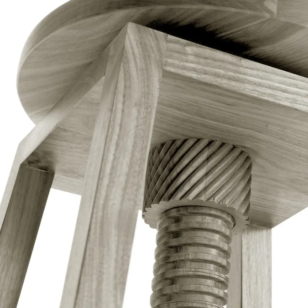 Invito Solid Wood Stool, Walnut In Hand-Made Natural Grey Finish, Contemporary