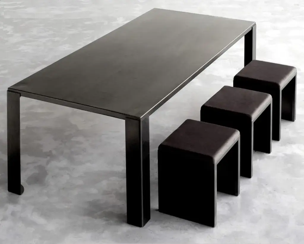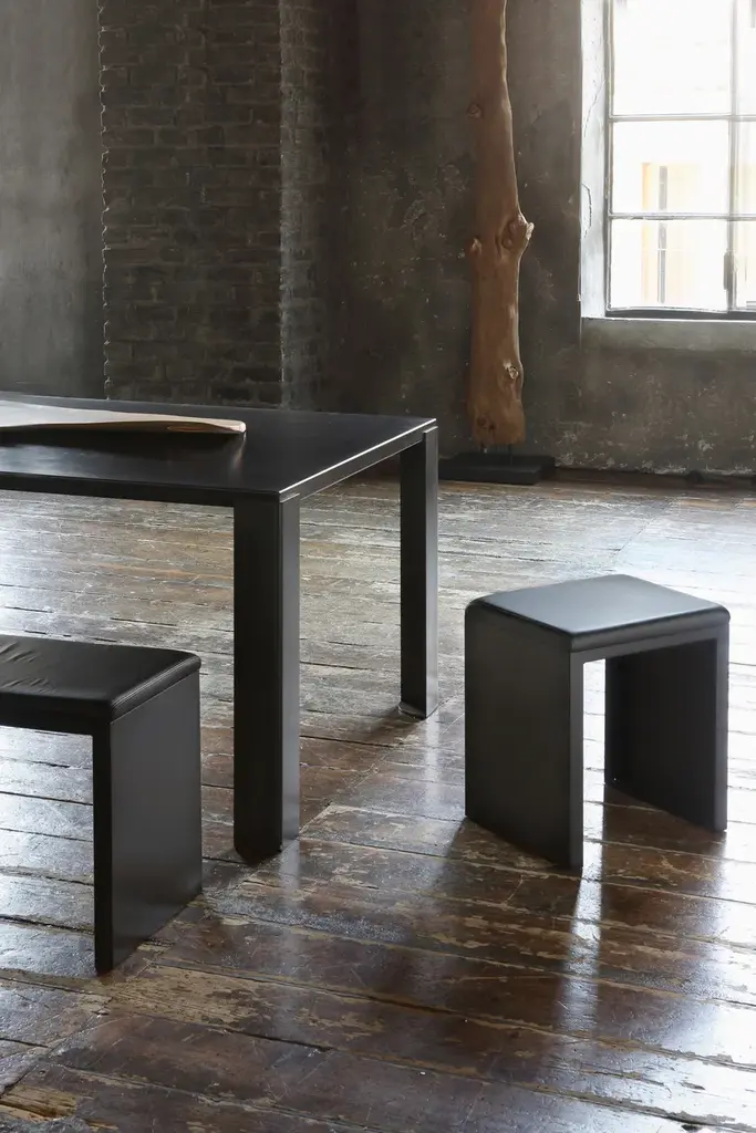 Irony is a leather stool.Frame: Copper black sand-touch/ Embossed whiteSeat: Padded with white or black leather upholstery